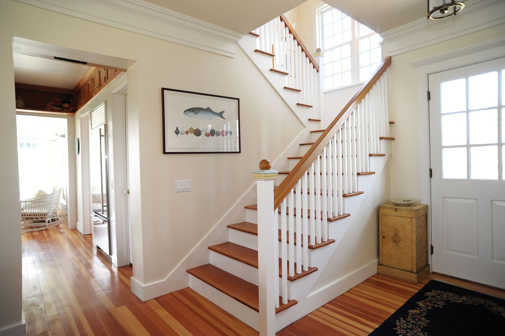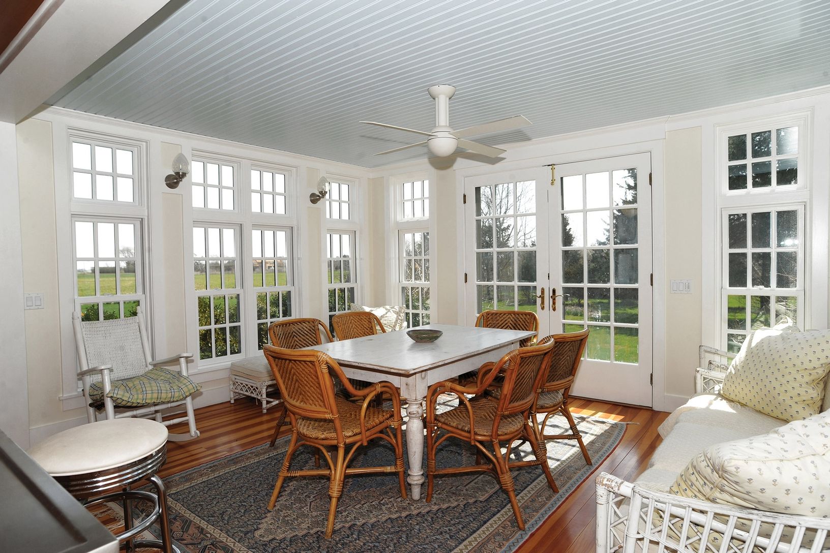Set back from the street is this classic three bedroom, three and one-half bath beach cottage recently designed by a local architect. The open floor plan offers lots of light and French doors leading to the outside. The first floor has a living room with fireplace and dining area. There is a state-of-the-art kitchen that opens to a light filled sunroom for dining and relaxing. A pantry, laundry room and half bath are off the kitchen. There is