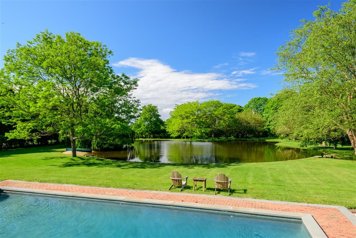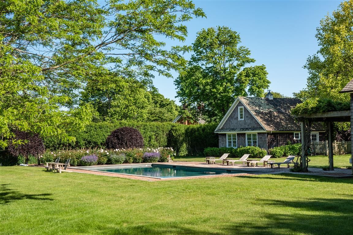 Nestled behind mature hedges in the heart of Sagaponack South, this classic farm house offers old world charm and a sense of tranquility rarely found today. Set on over 2 acres, the main 3500+/- sq ft house and additional studio frame and highlight an exquisite pond surrounded by magnificent specimen trees, and enchanting plantings, ensuring flowers from early spring through fall. Captivating gardens feature antique roses, masses of peonies a