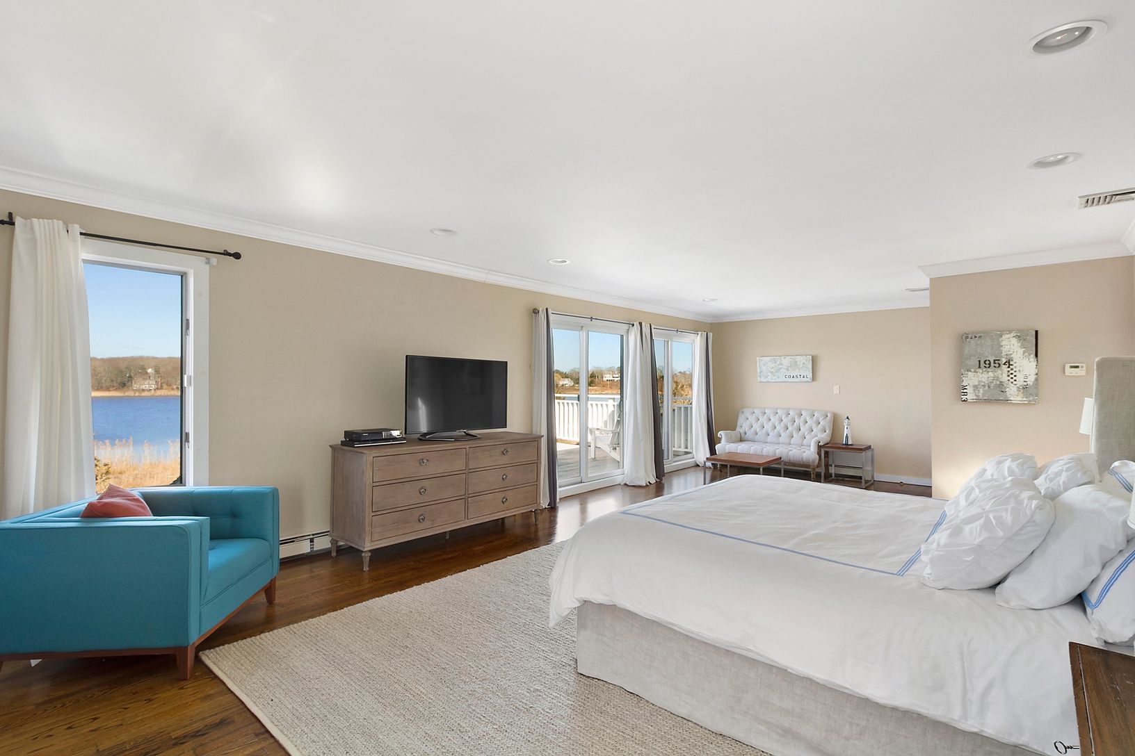 Grand and bright, crisp and airy traditional overlooking Poxabogue Pond. This shy 4000 square foot home features 5 bedrooms, 4 baths, open kitchen and breakfast area, formal dining area and large living room with vaulted ceilings. Additional open den area offers room for reading or play. Expansive french doors open to large decking area, phenomenal heated gunite pool with more decking all overlook serene pond. Front of house overlooks fiel