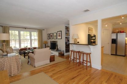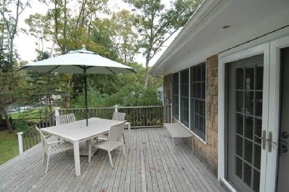 Great, renovated four bedroom cottage has three baths, living room with fireplace, kitchen, heated pool, beautiful deck and back yard abuts a 60+ acre reserve. Very convenient to Sagg General Store and ocean beaches. Two master bedrooms with en suite bath. Brand new mahogany deck off kitchen/dining area. Bright, sunny, delightful.