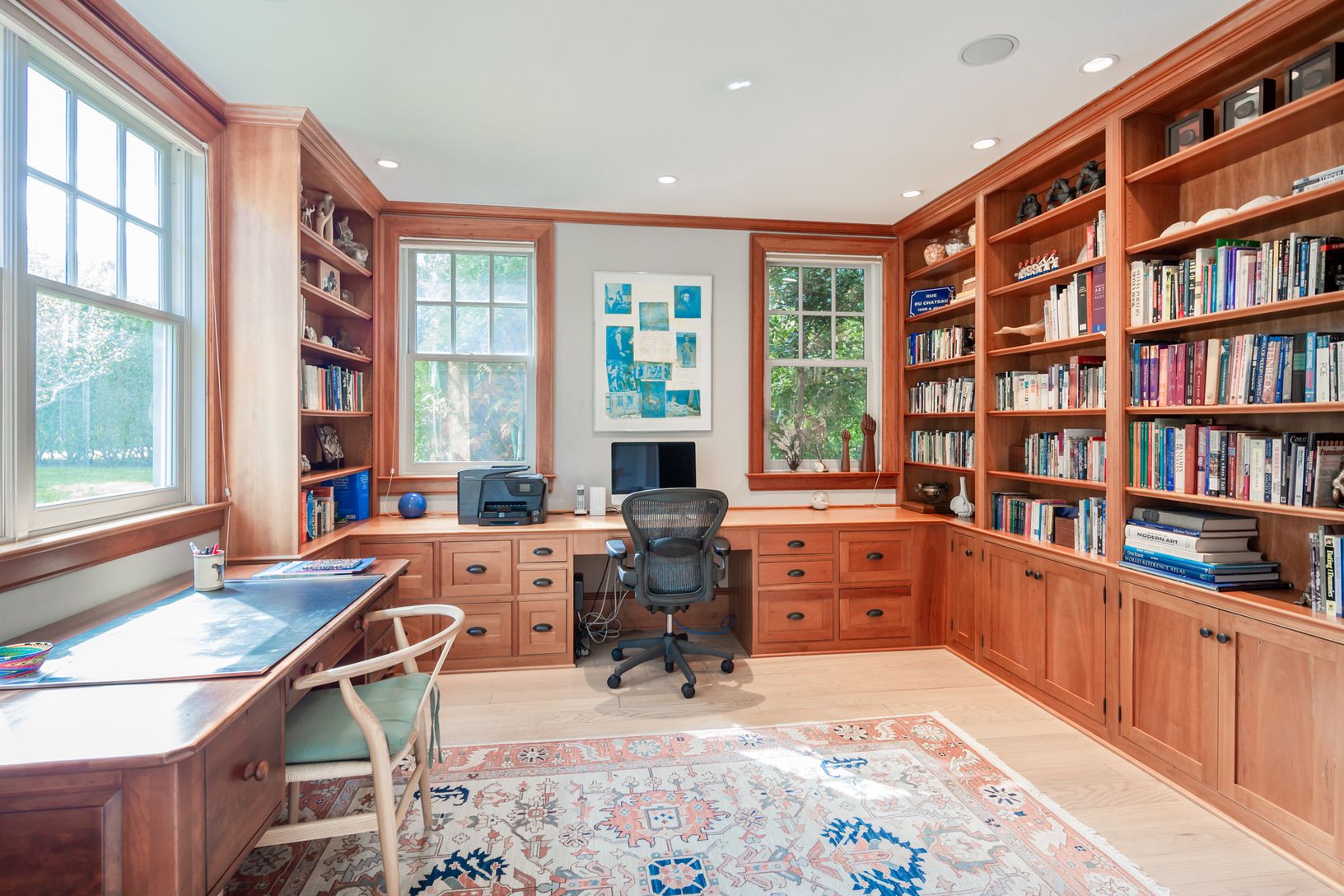 Immaculate and absolutely perfect home in Sagaponack south. Spacious and open gourmet kitchen with eating area and adjacent den with fireplace. Formal dining room, living room with fireplace and large first floor office. 1 bedroom and bath on first floor. Upstairs master bedroom suite with fireplace. 3 additional second floor ensuite bedrooms. Beautifully landscaped 1.5 acre parcel with heated gunite pool, bluestone patios and all weathe