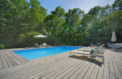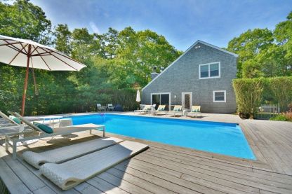 This 3 Bedroom, 2 Bath designer decorated Saltbox is located on a charming lane with lush Flowering Gardens that surround the completely private Heated Pool. House and Decks have just been stained and there is all new outdoor furniture. Light bright Open Floor Plan. Large Kitchen, Dining Area, and 2 Story Living Room with Fireplace. A perfect Summer Getaway