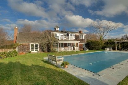 Renovated south of the highway farmhouse featuring a spacious master bedroom with balcony overlooking a 15 acre reserve. The residence features three additional roomy bedrooms, living room, country kitchen and an exceptional library with the perfect fireplace setting. Feel the ocean breeze while you relax at the heated pool. You can bike to the beach or saunter to the Sagaponack General Store for your morning coffee. A dreamy home that's perfe