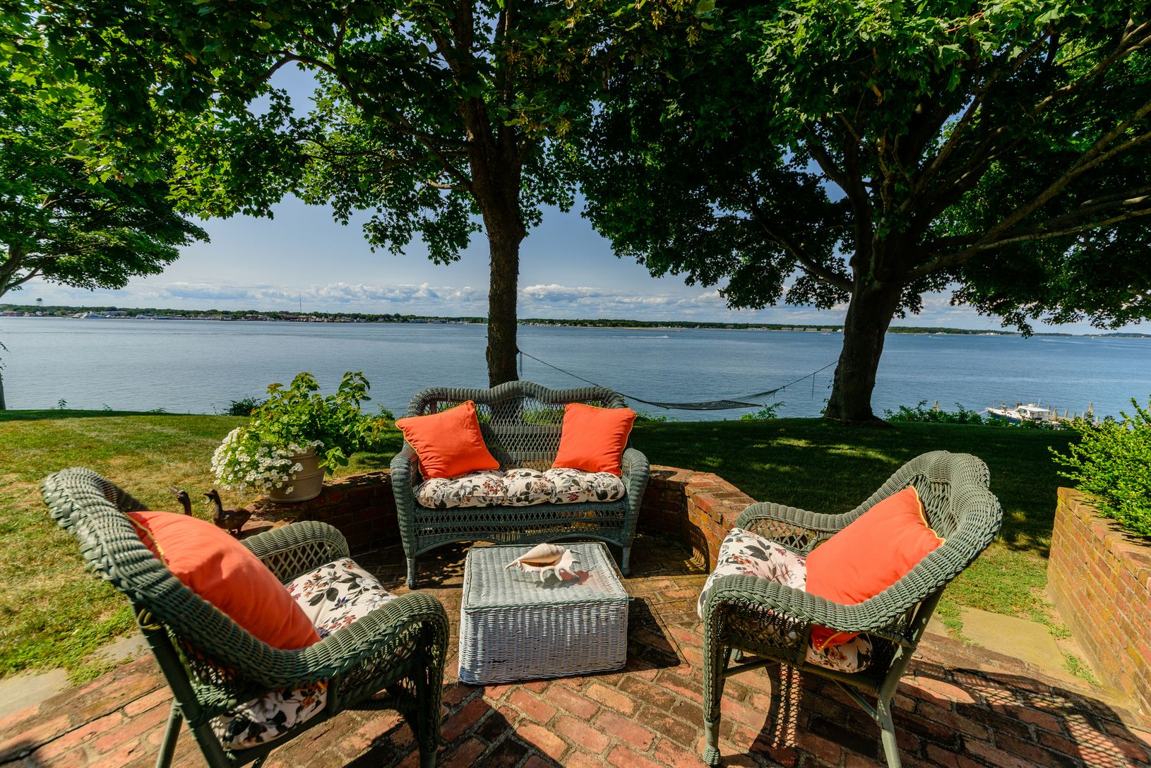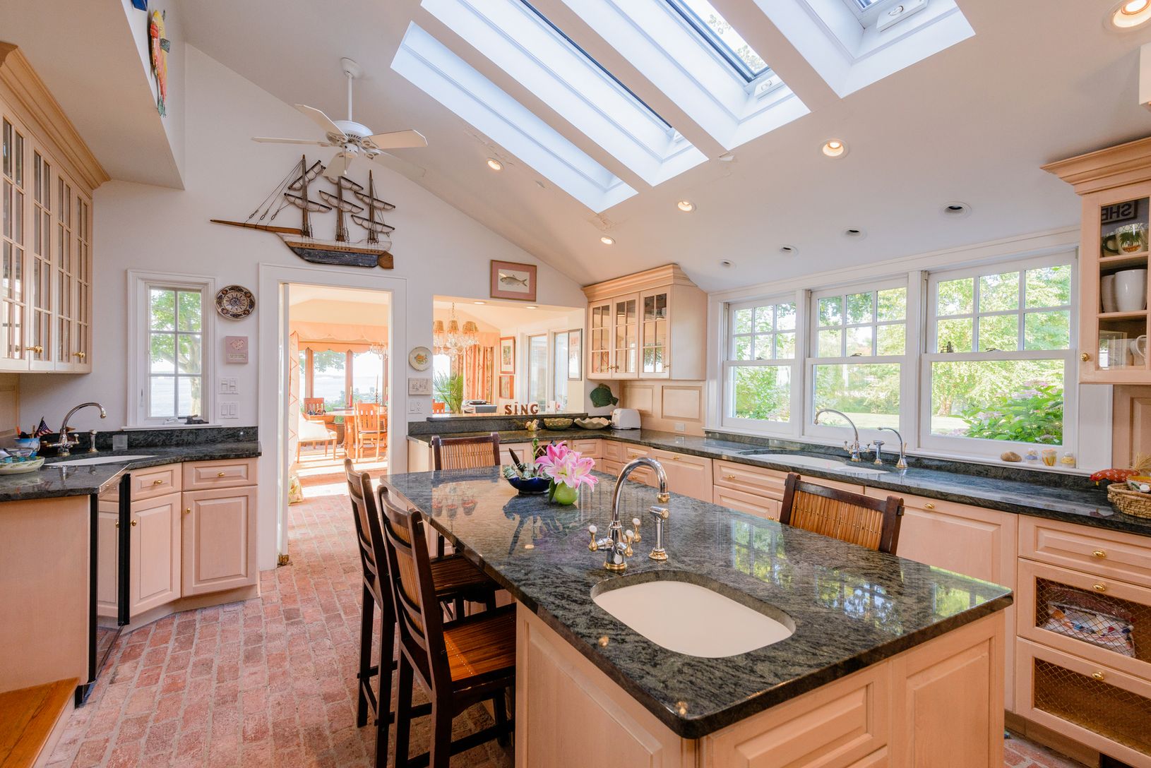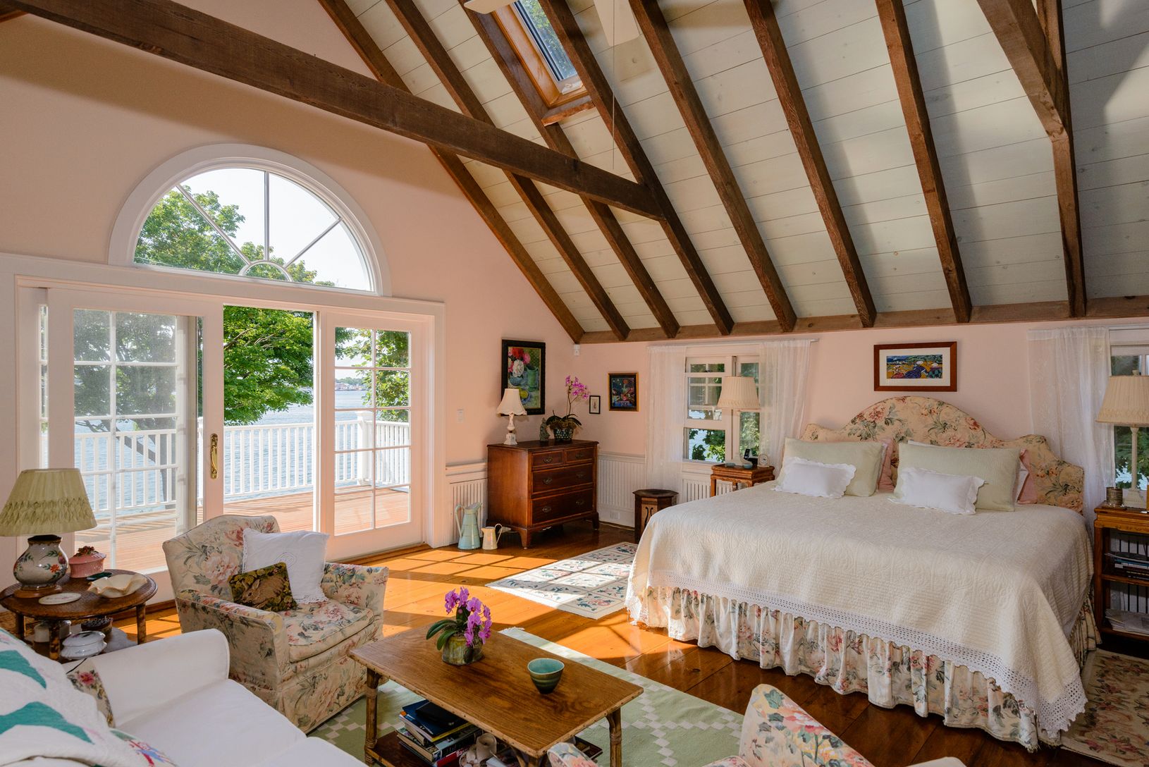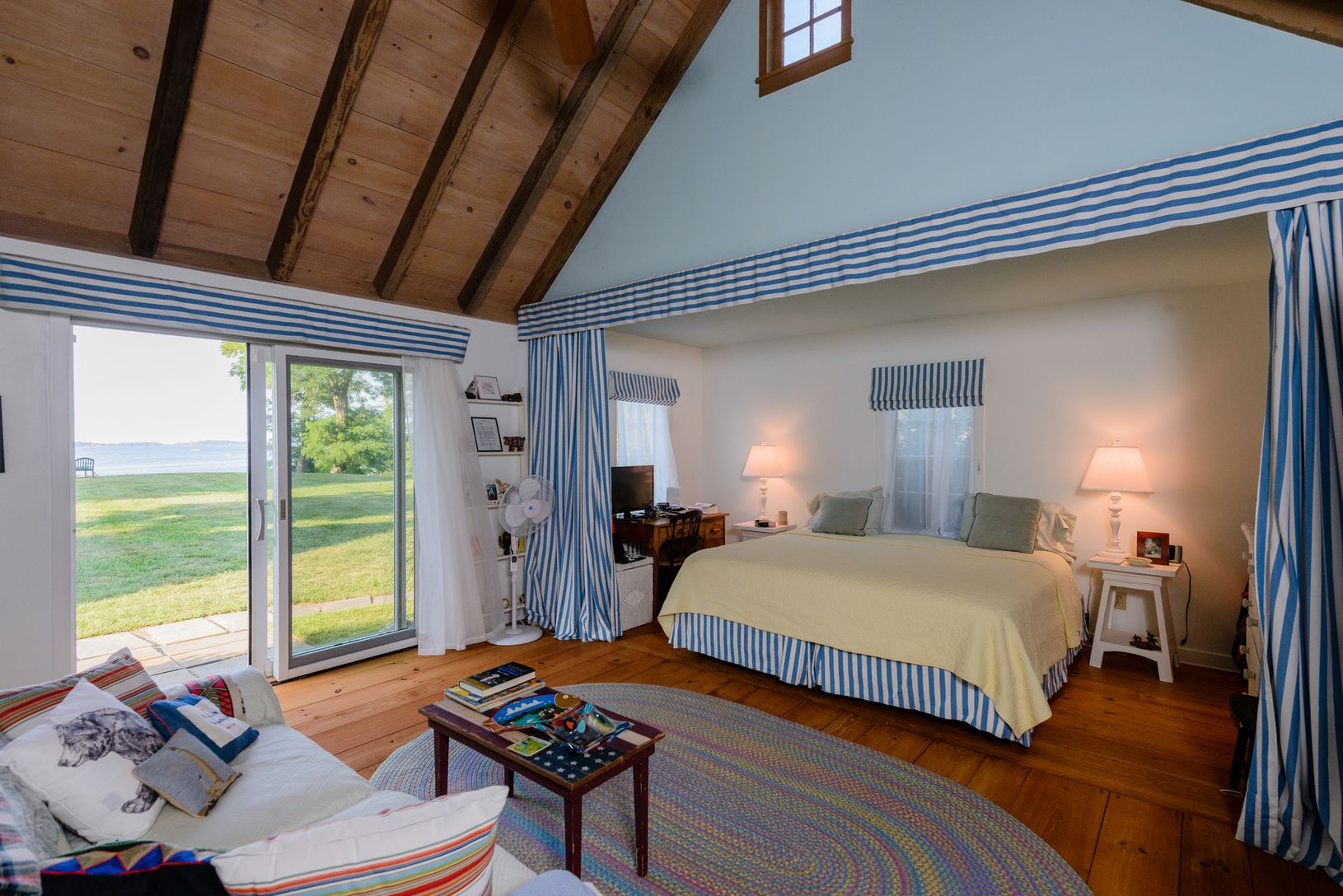 A superb waterfront location with panoramic views and a unique historic pedigree, this offering is an unrivaled opportunity to own in prestigious Dering Harbor. The exquisite 4 acre property, featuring a main residence and a fully appointed guest cottage, offers understated elegance, showcasing the grandeur of magnificent views and unparalleled sunsets. The spacious living room has wooden beams, a fireplace and stunning wide-plank floors. Fren