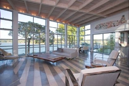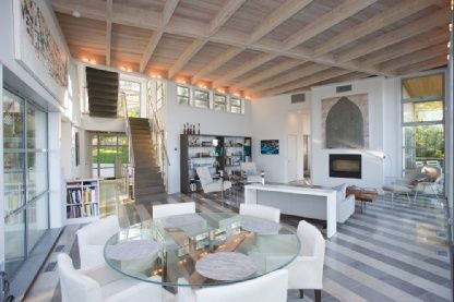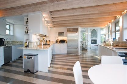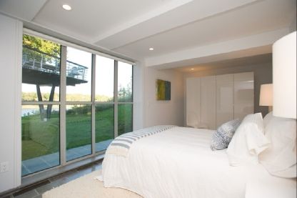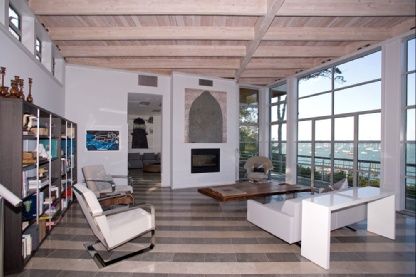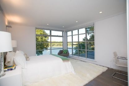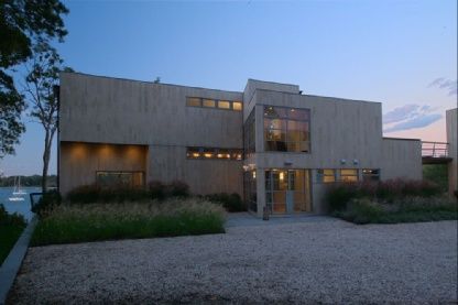 Located on Dering Harbor this modern home with deep water dock has much to offer.. Walls of glass and wrap-around decks ensure a glorious water view from every vantage point throughout the three levels of living space. The main level has a large chef's kitchen with butlers pantry, massive living area with double sided gas fireplace, den, powder room, and a large en-suite guest bedroom and waterside deck. On the lower level you'll find a larg