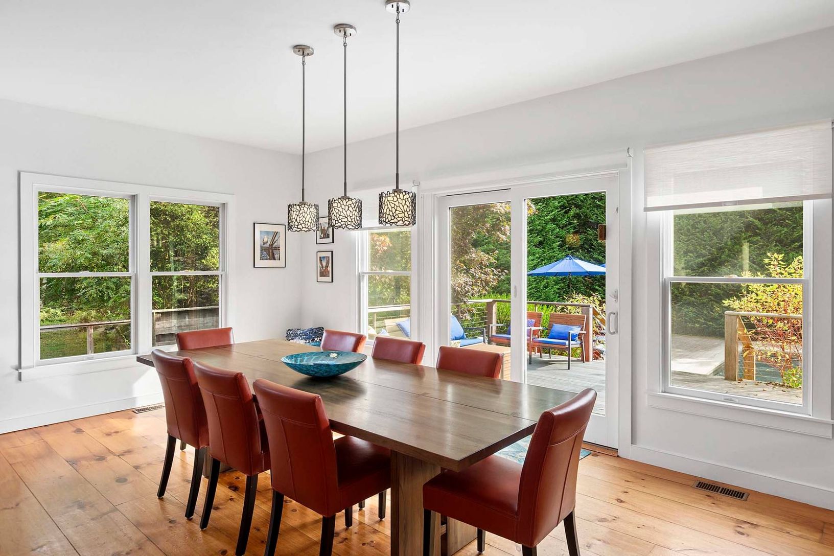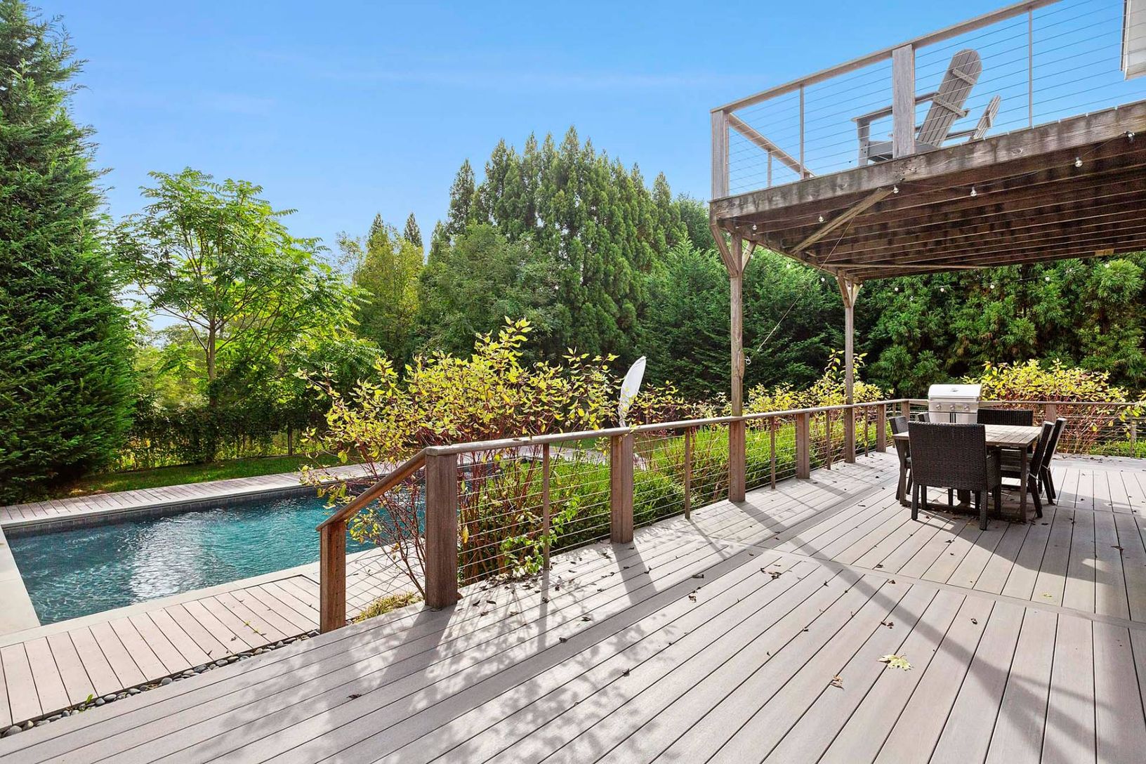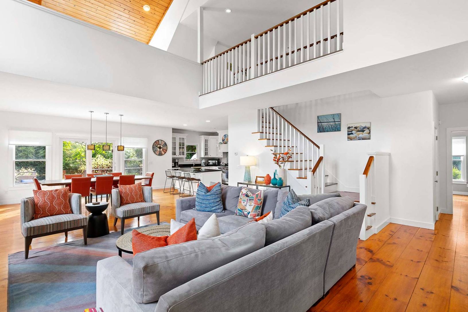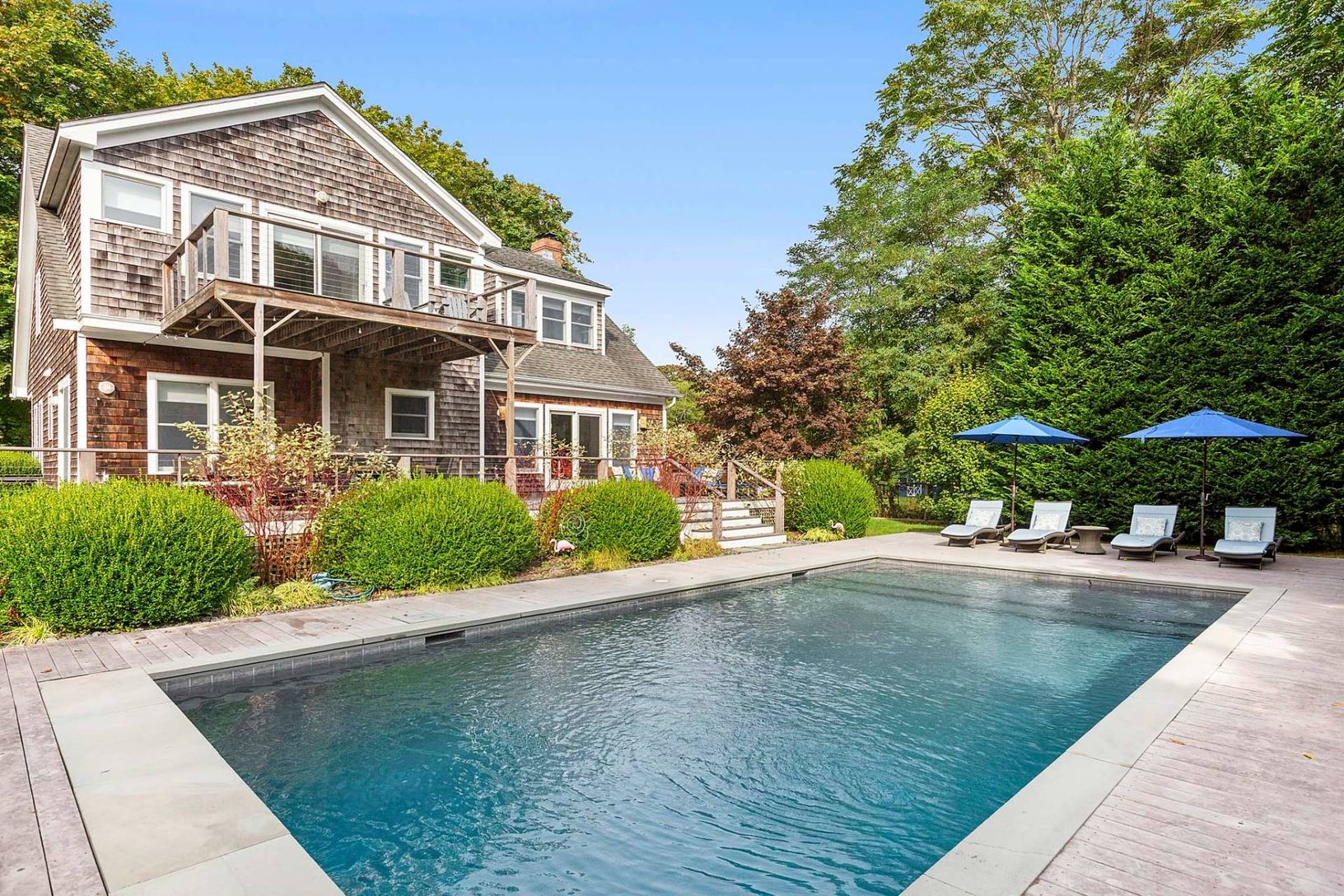Located within close proximity to harbor and beach, this traditional offers a great room with vaulted ceilings, chef's kitchen, first floor bedroom and second floor with three additional bedrooms and office area. The grounds offer privacy and a beautiful in-ground pool with decking - new to the rental market for 2026 season!