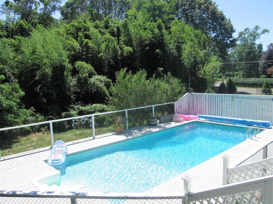 Enjoy the summer in this very well priced summer rental with pool, dock and association beach. This 3 bedroom 2 full bath home is simply furnished and ready for entertaining on the large secluded deck and pool. If the beach is what you desire, the association beach is only a quick jaunt away. If boating is what you desire, this rental also comes with a floating dock in the protected harbor with a 10 minute boat ride to Sag Harbor.