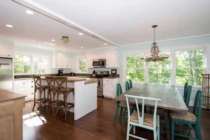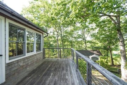 This traditional home has been completely updated in 2010 with cental air conditioning, and central vac. and all new windows. The house is sleek and charming, with inspiring water views from the back deck, overlooking Mashomack Preserve. The front deck offers views of the islands colorful sunsets. Off the foyer is a living room with fireplace, cathedral ceilings and water views. Adjacent are the kitchen with breakfast bar and dining area wi