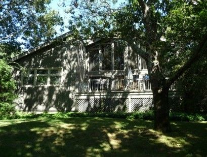 Multi level 3,800 Sq Ft light filled Shinnecock Hills Chalet. This wonderful, very private 5 bedroom, 3 bath home with soaring ceilings and enormous windows is the perfect escape. The main entry level has 2 bedrooms, a full bath, kitchen with fireplace, laundry room, a double height living room with a fieldstone fireplace, den/family room and sliders leading to the front and rear outdoor decks for entertaining. The open living room staircase l