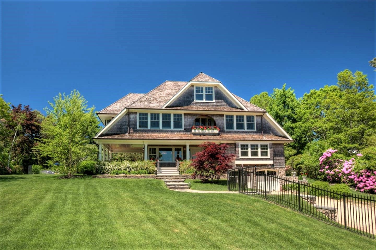 Once you enter this gated property, and proceed up the 300ft driveway, a custom four bedroom, four and a half bath shingled Hampton’s classic awaits you. It’s situated on 1.3 acres with views to Shinnecock Bay and the ocean beyond. It is located south of the highway and only minutes from Southampton Village and beaches. This property is lushly landscaped, surrounded by pine, spruce, oak