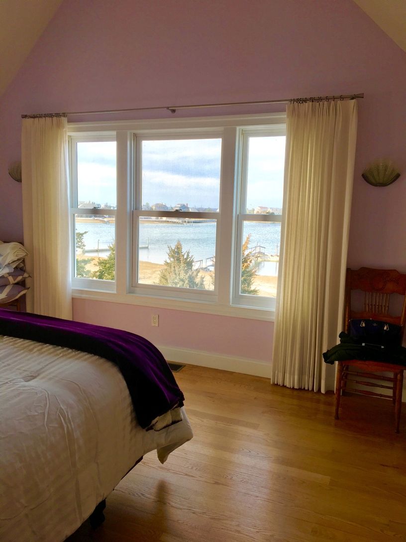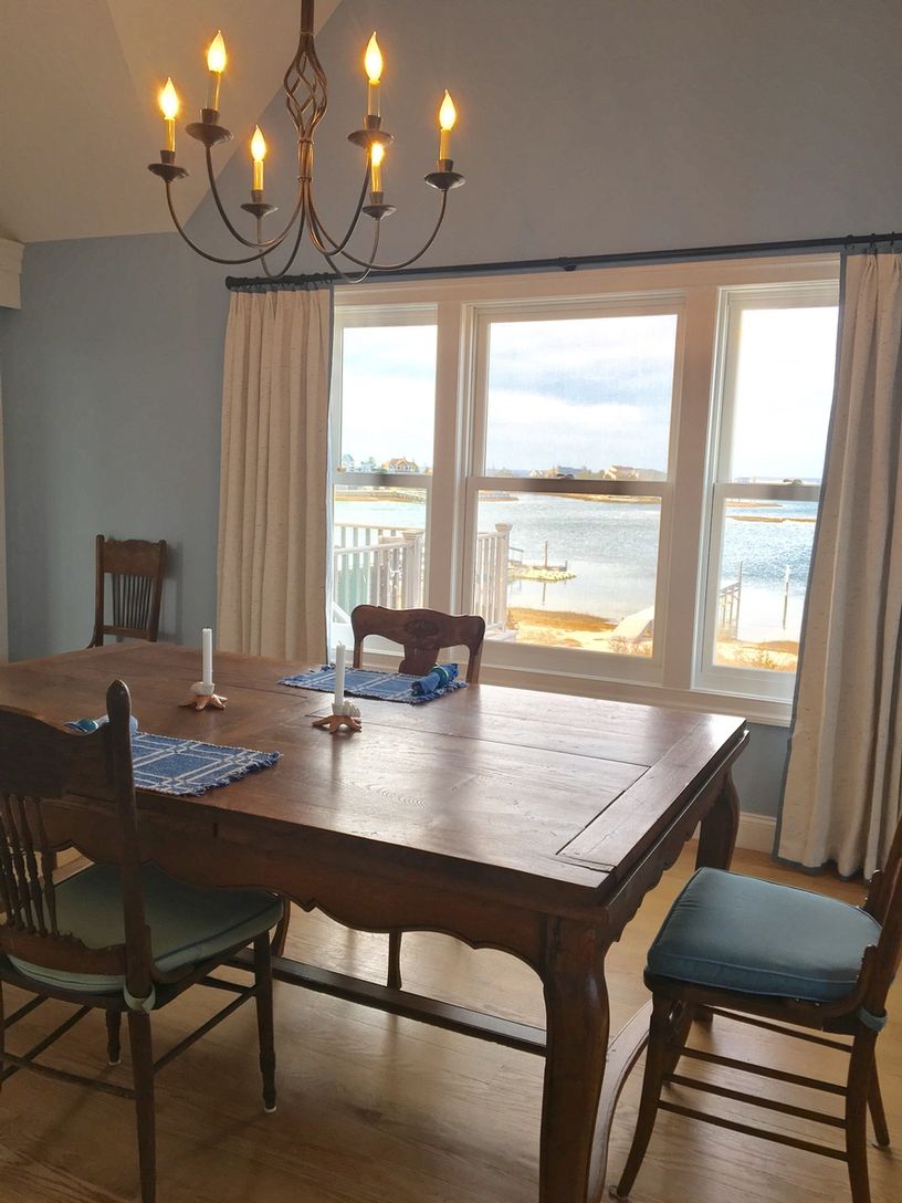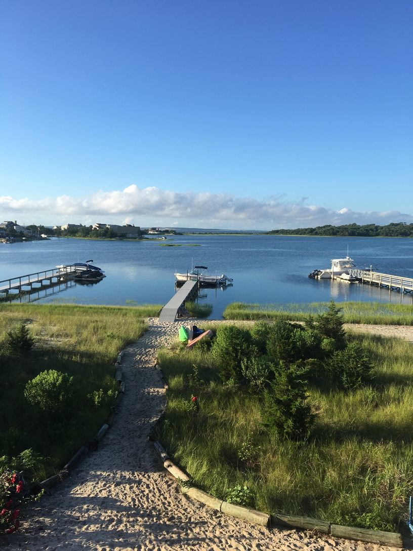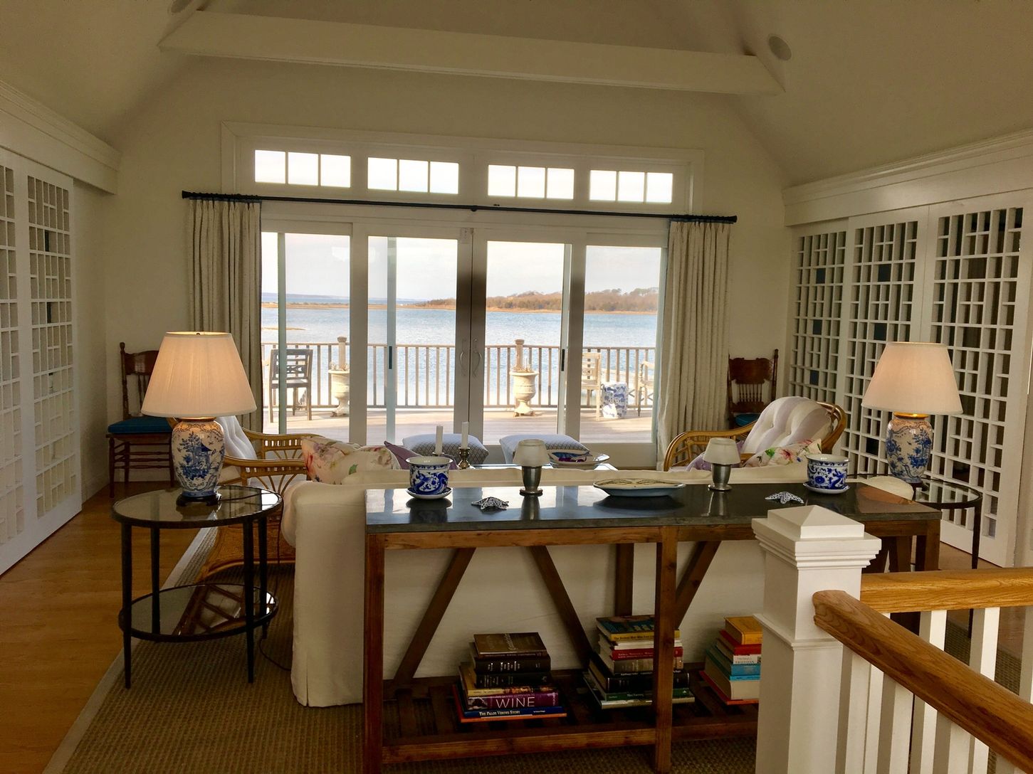 Fabulous spot on the Great Peconic Bay for rent a few weeks during the summer. House is fresh and beachy with 5 bedrooms, 3.5 baths and heated gunite pool. It's an upside down house to take advantage of the spectacular views. There are 2 decks, a sandy beach, private dock, huge vegetable garden, outdoor shower, kayaks and canoes. Enjoy clamming right out back and bring your boat! Available for 2 weeks.