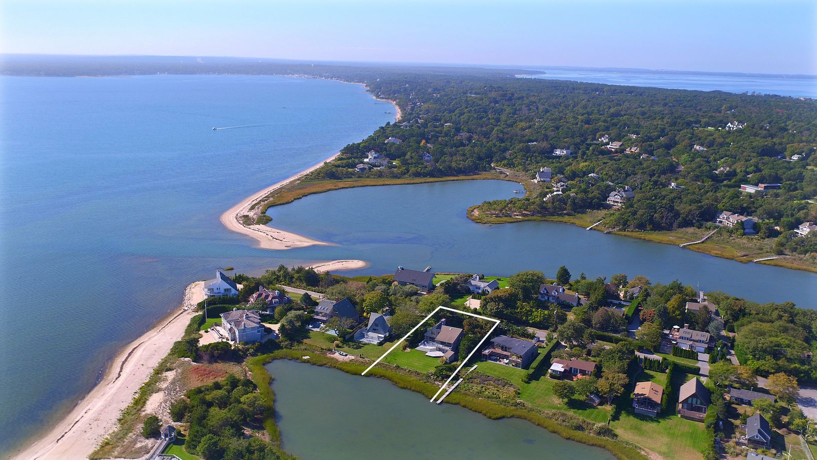 Malibu beach house in the Hamptons. Fabulous waterfront location with beautiful water views and access to Shinnecock Bay. This light and bright 4 bedroom, 4 full bathroom gem with stunning architectural nuances boasts fully-renovated bathrooms, new whitewashed oak floors and a state of the art kitchen with stainless steel appliances. Living and dining areas open onto expansive entertaining decks facing the 180 degree water views. There are 2