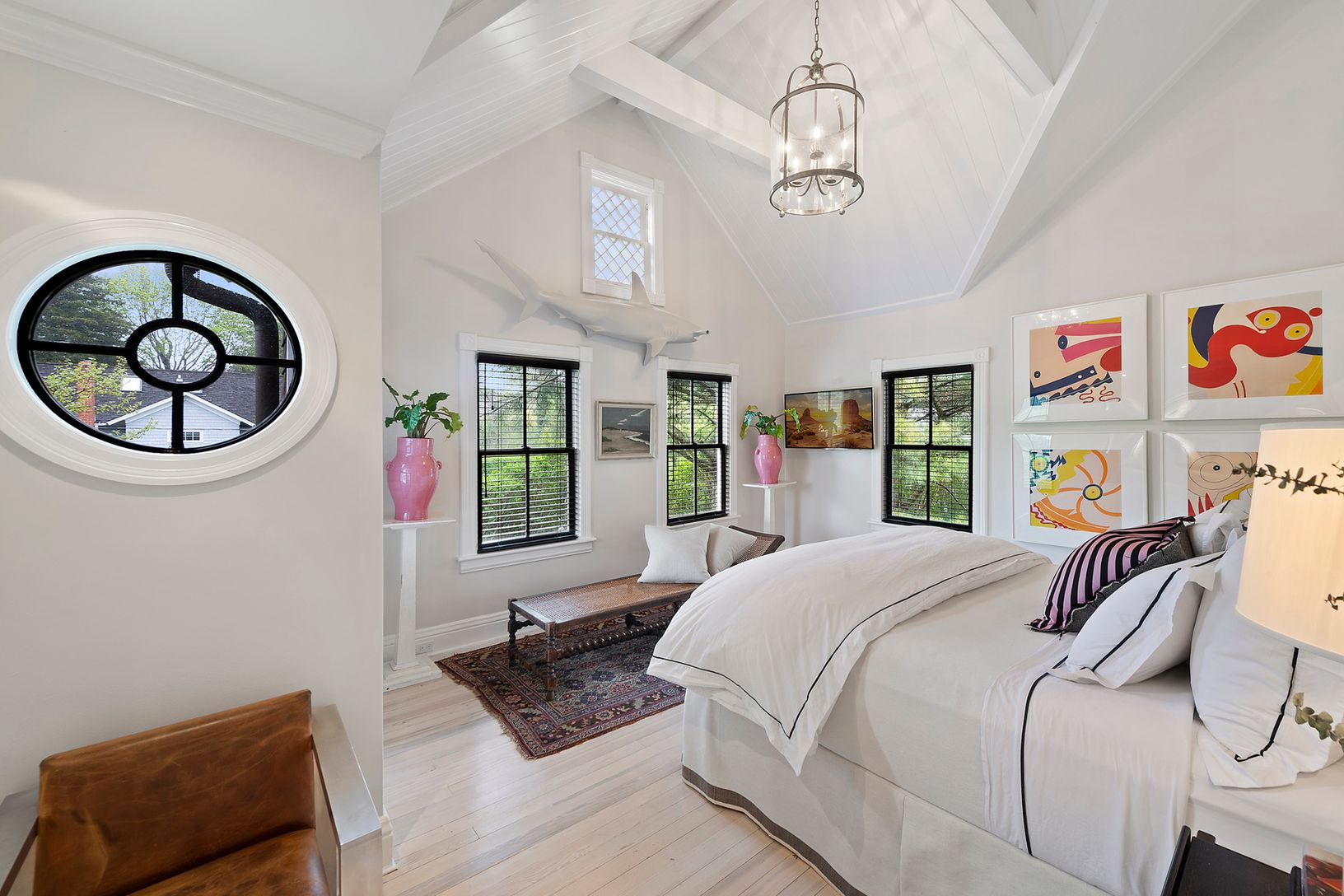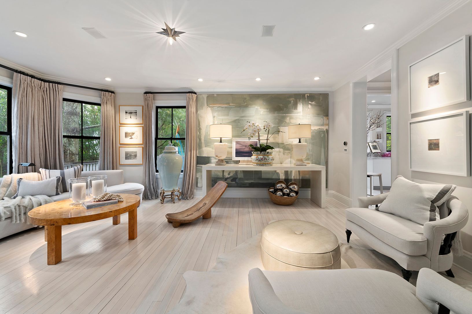 Following a careful and complete restoration, this turn-of-the-century farmhouse in the center of Southampton Village has been thoughtfully updated with every modern convenience, yet it maintains all of its original historic charm. Wrapped on all sides by high hedges for complete privacy, the enclosed near half-acre property boasts two driveways and a large front gravel parking court. Inside, the published interior includes a sun-soaked four