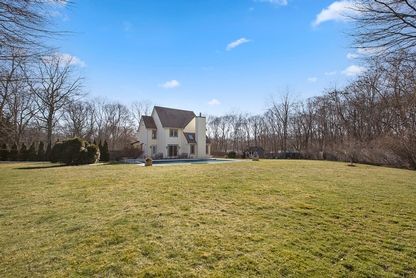This meticulously kept home is situated on a private acre flag lot, bordered by a natural tree setting and is a beautifully landscaped. Entrance along the blue stone driveway brings you to the enjoyment of your own private oasis. A heated salt water pool with flagstone patio, mahogany wraparound porch and deck is perfect for entertaining and relaxation. There are five bedrooms. The master en-suite is very spacious with vanity, two closets. Th