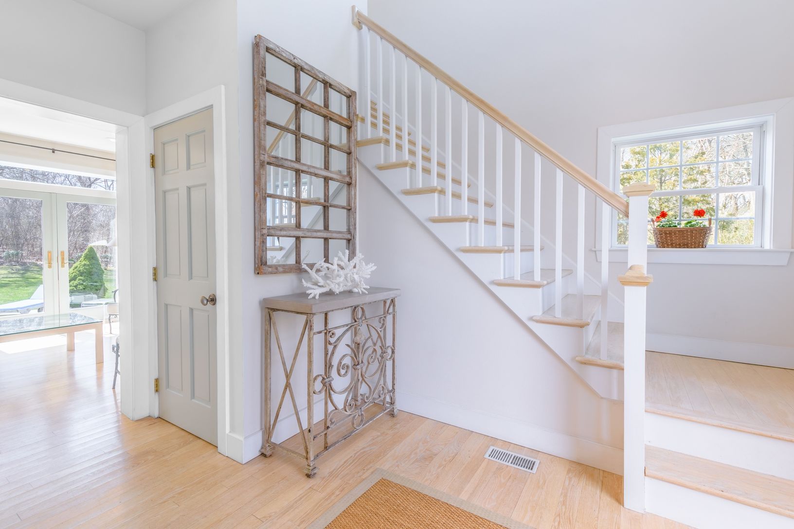 This picturesque property, located on a quiet road in Southampton, offers the graceful elegance of a larger estate in a comfortable weekend home. Situated on 1.7+/- private, professionally landscaped acres, the pristine Federal-style house combines a classic aesthetic with the floorplan and conveniences designed for the modern lifestyle.