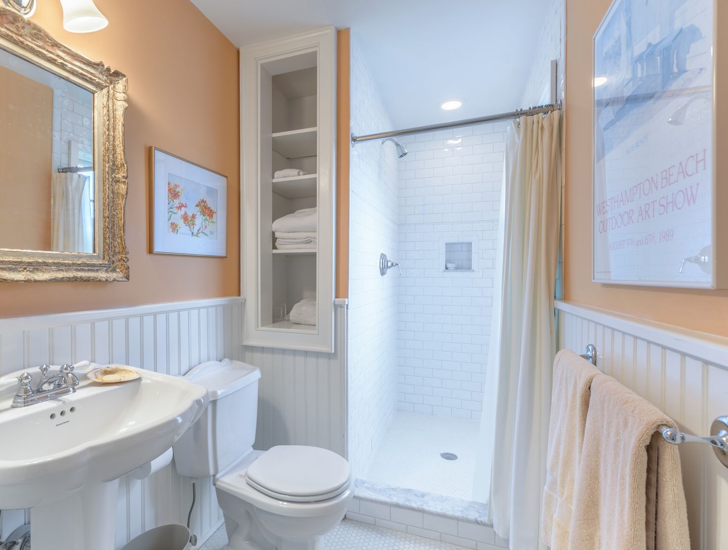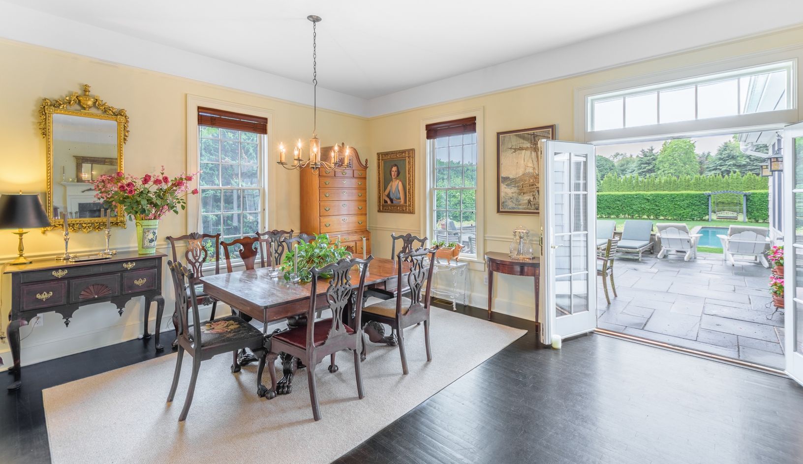 Located in Southampton Village approximately 200 yards from shops and restaurants, this 8 year old traditional cottage features a chefs kitchen, living/dining area, sunny room, library with wifi, a half bath and a junior ensuite master on the first floor.Upstairs are 3 ensuite bedrooms including a master, 2 guest rooms and a washer/dryer. The rear yard has a large flagstone terrace over looking the heated gunite pool/spa and is bordered by 2+/