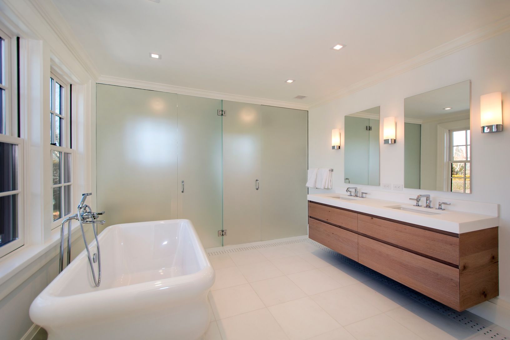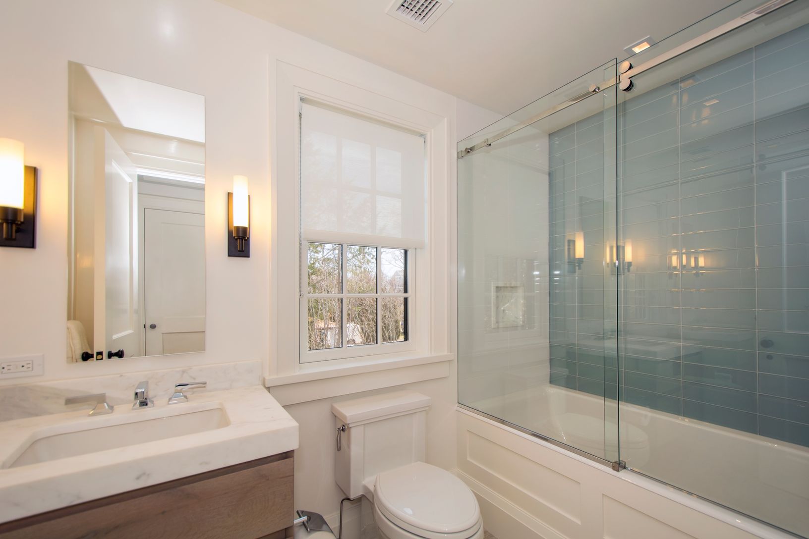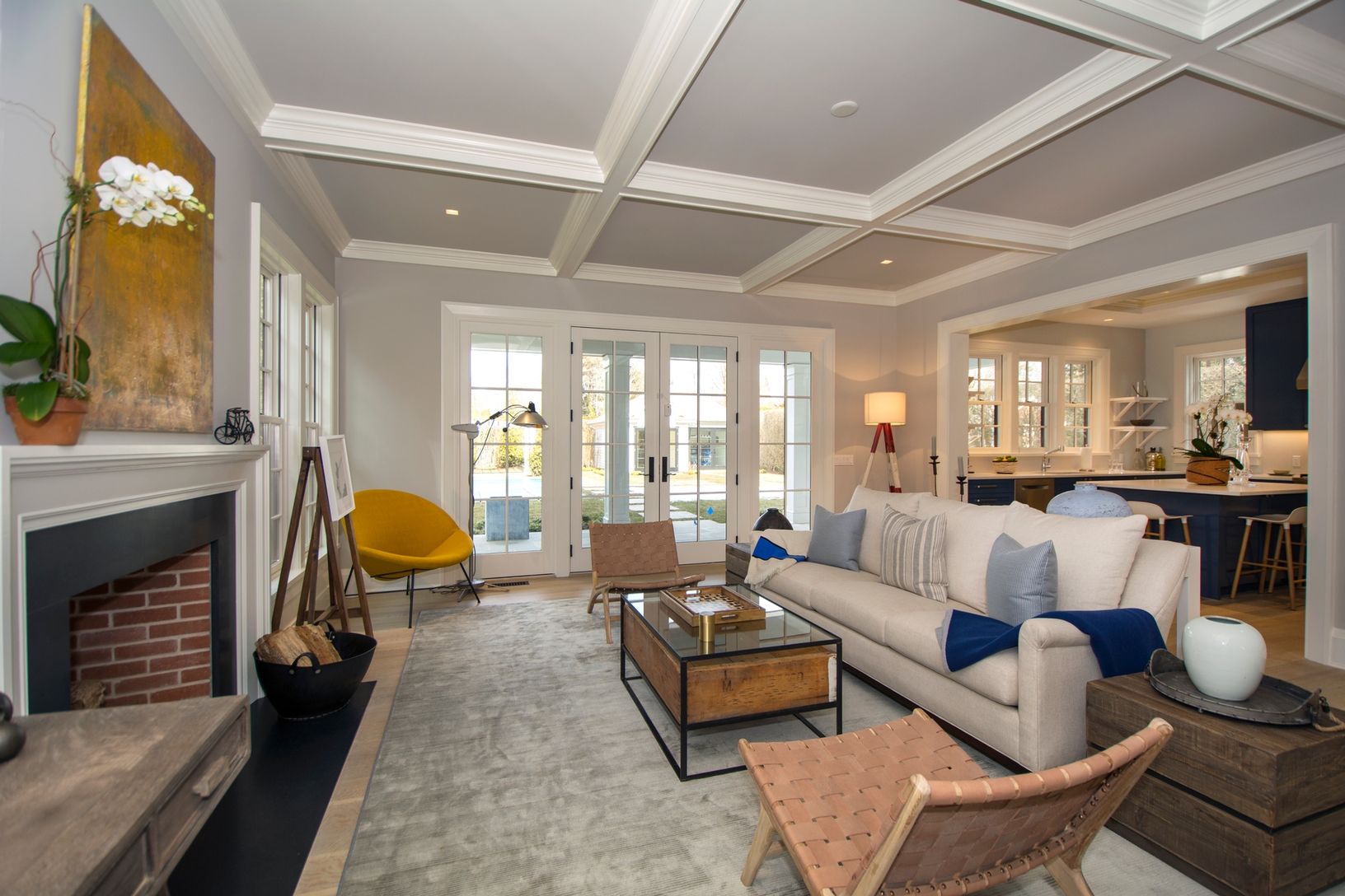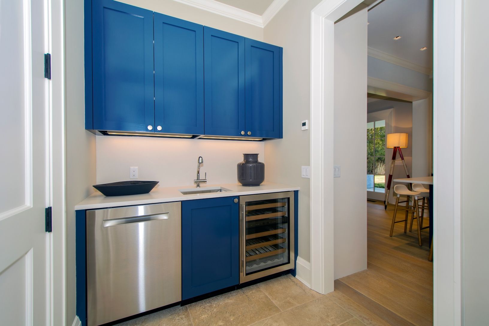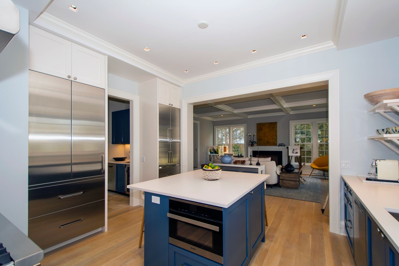 Located in the hot area of Southampton Village, east of South Main, this new residence with pool, pool house, and garage evokes the modern/transitional style. Light-toned wide-plank flooring, dark-toned accents and handrails, wide horizontal wainscoting, superb modern bathrooms, and a brand new ultra- modern kitchen with Bosch, Subzero, Wolf, Miele appliances have all been installed. The five-bedroom, six-bath home offers a den/convertible gue