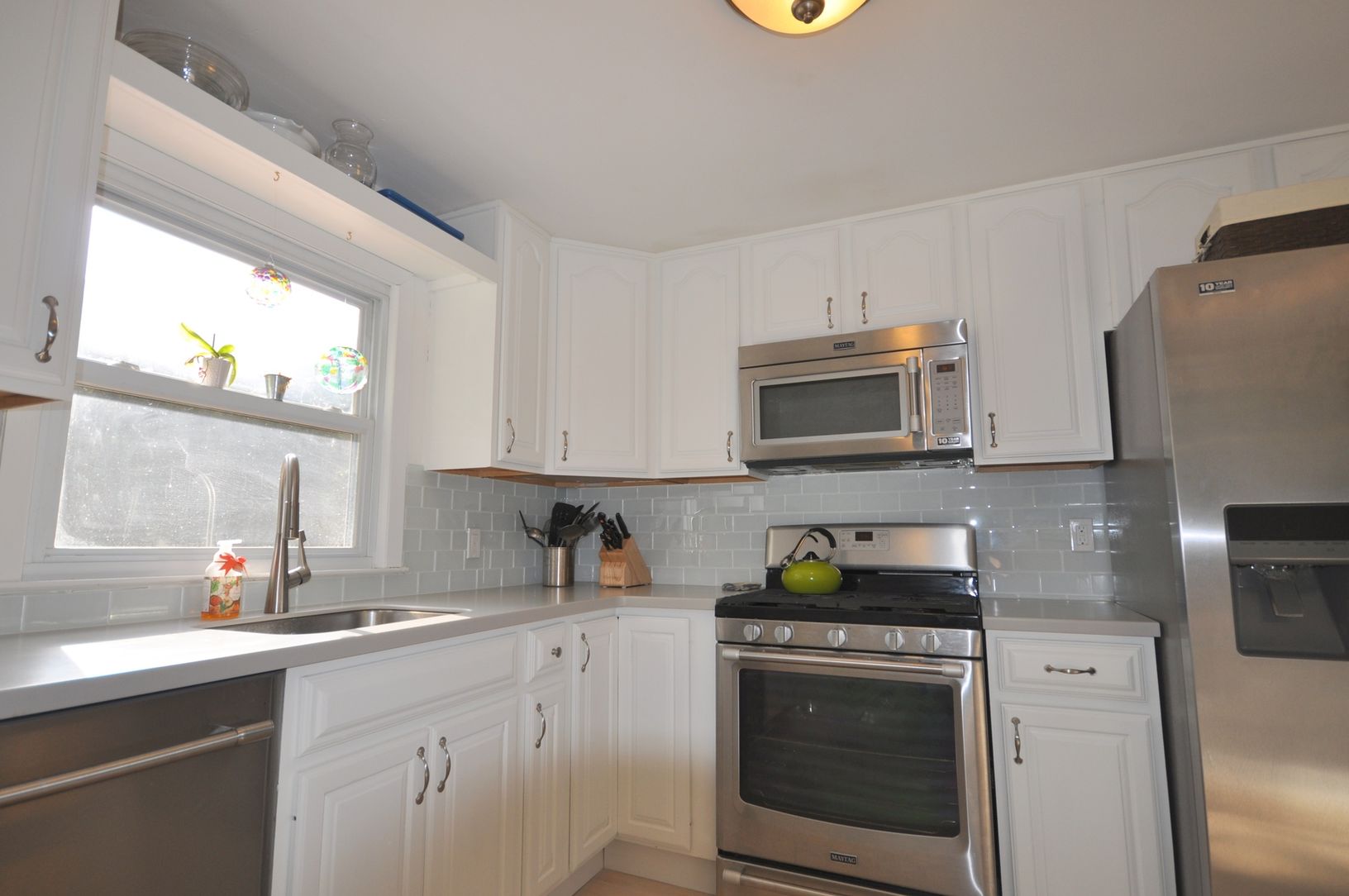 Light and bright ranch on .88 acres. Main level has 3 bedrooms, 1 bath with living room and newly renovated eat in kitchen with stainless appliances and glass tile back splash. There is a walkout finished lower level family room with a fireplace and additional full bath. Backyard is large and private with mature landscaping - perfect for entertaining with expansive decking and in ground pool. Hardwood floors and Central air. Well maintain