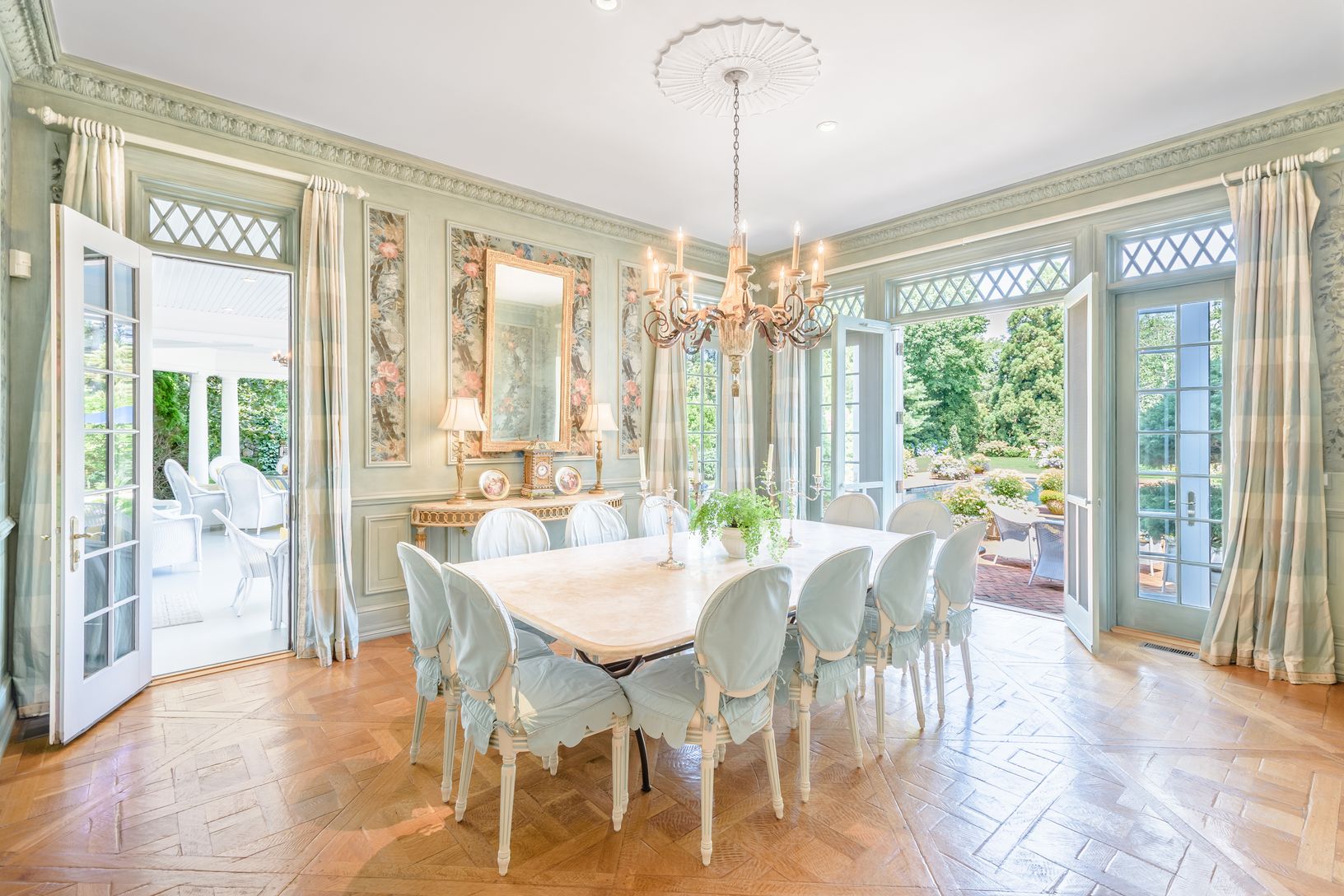 This magnificent and meticulously detailed home is sited on 2+/- acres of magical, park like grounds and located on legendary Gin Lane. The gracious floor plan, perfect for entertaining, includes a large formal Living room with a fireplace, paneled library with fireplace, sunroom, formal dining room and an oversized kitchen/ family room all accessing the gardens, covered dining porch, patio and pool. There are 11 bedrooms, 11 full baths, 2 hal