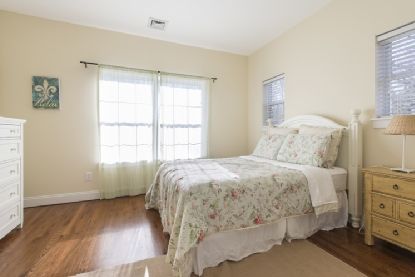 This five bedroom, three bath home with heated pool on over a half acre is close to water and minutes outside of Southampton Village. The traditional style home was built in 2005 and has a lovely covered front porch and nestled on a fenced-in lot. The interior of the home has a large and welcoming entryway that looks through to the open living room with fireplace. The Chef's kitchen offers every modern amenity with lovely white cabinetry, s