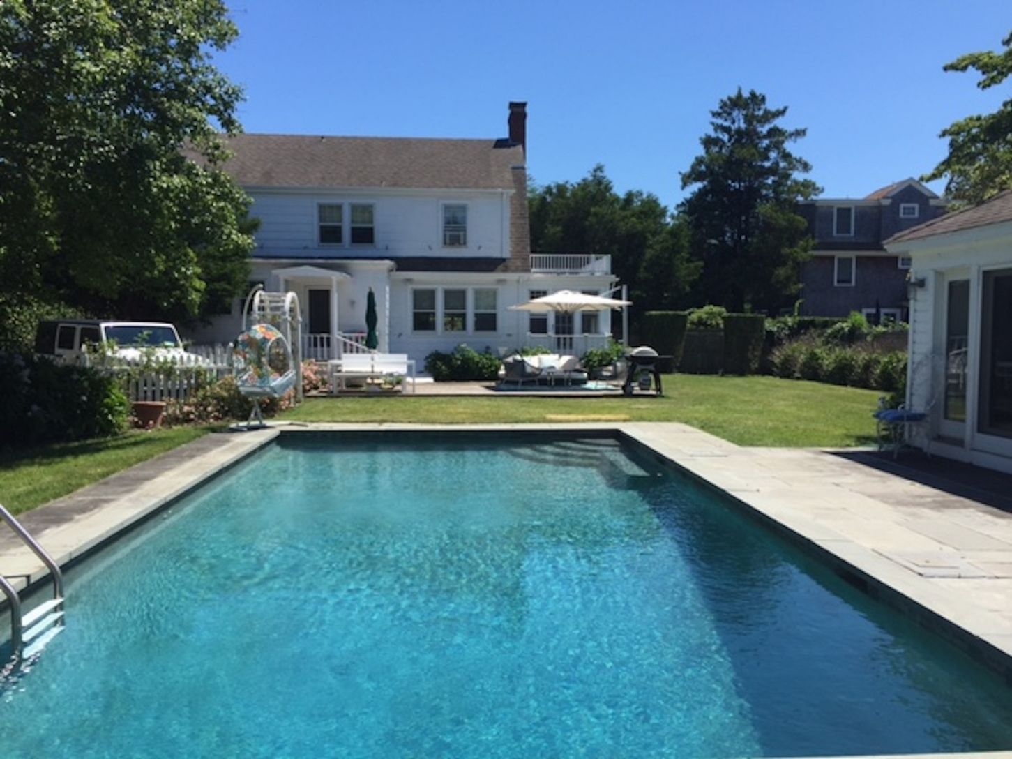 Just a short distance to Village shops and restaurants, and about one mile from Little Plains Road Beach. This charming Dutch Colonial offers a living room with fireplace, sound system wired for outdoor listening, full dining room, kitchen and sunroom. There are three bedrooms and two and one-half baths. The .55 acre grounds feature a gunite pool and pool house with full bath, providing extra entertaining space. Room to expand. Office use a po