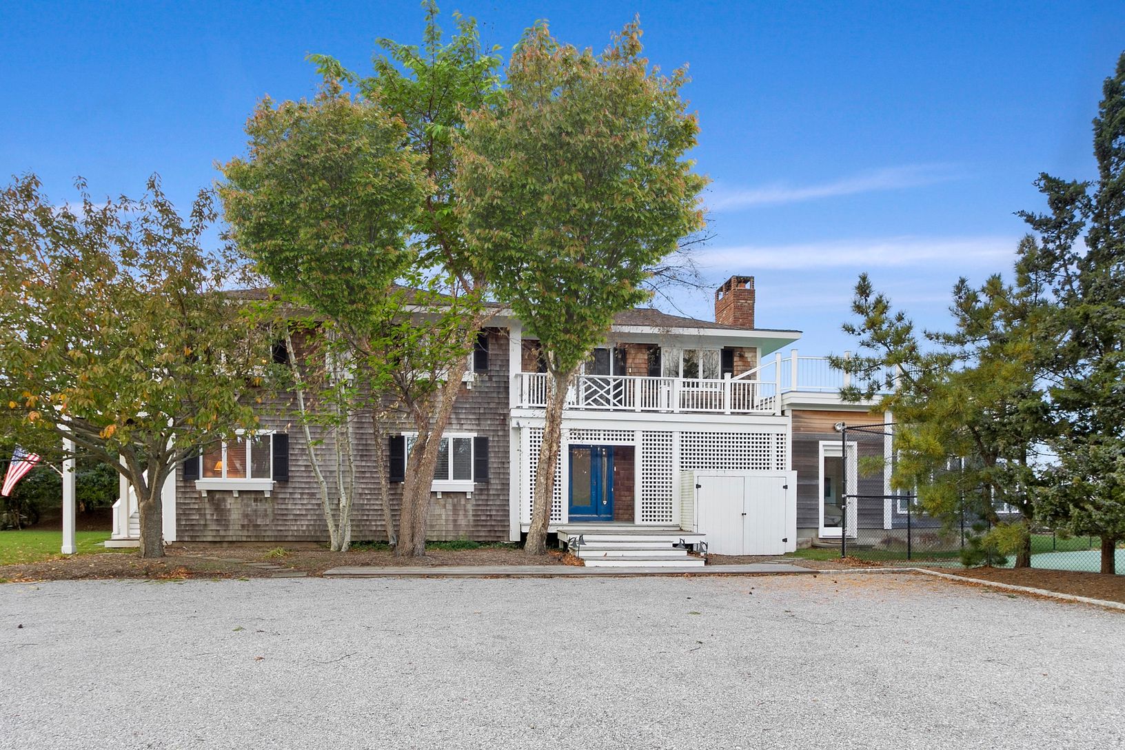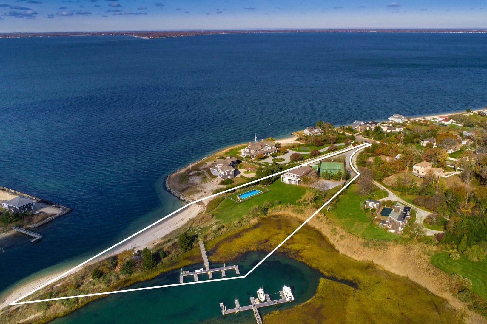 One of a kind waterfront opportunity to truly have it all at this picturesque bayfront compound. Enjoy stunning waterviews of Peconic Bay and Wooley Pond, sunrise to sunset from this lush 2.6+ acre parcel. A water lovers dream, featuring an expansive beach, 500+ ft of water frontage, dock which can accommodate 2 large boats, 18x45ft heated pool, plus a tennis court with north/south orientation, this property is not to be missed. The 3950sf Tra