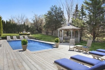 Rent this clean and chic four-bedroom, two-bath, designer decorated Southampton village home. Living room, eat in kitchen with sliding doors that open to backyard with beautiful grounds complete with heated pool , gazebo , outdoor shower and hedged yard for complete privacy- Close to all Southampton shops, restaurants and ocean beaches.