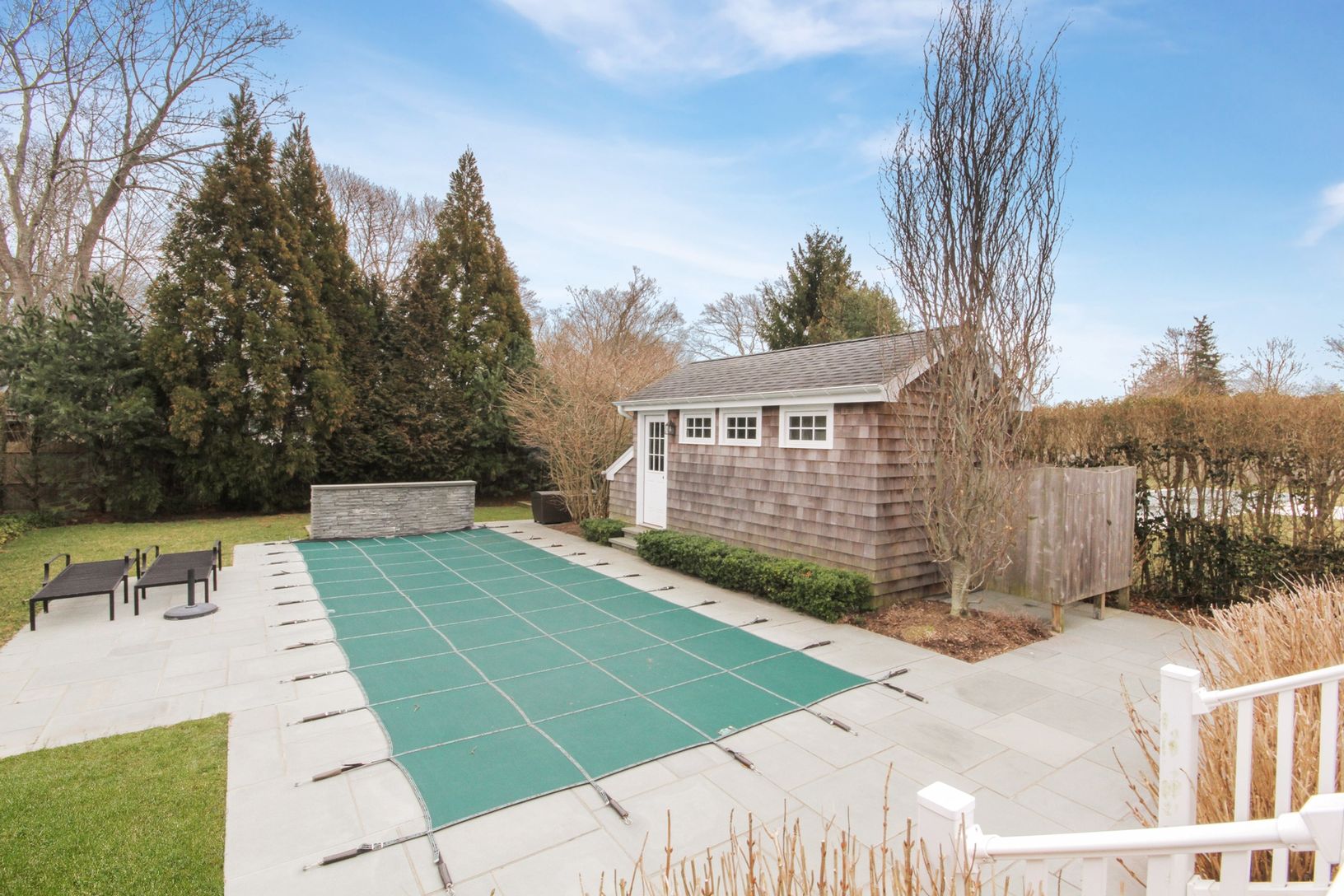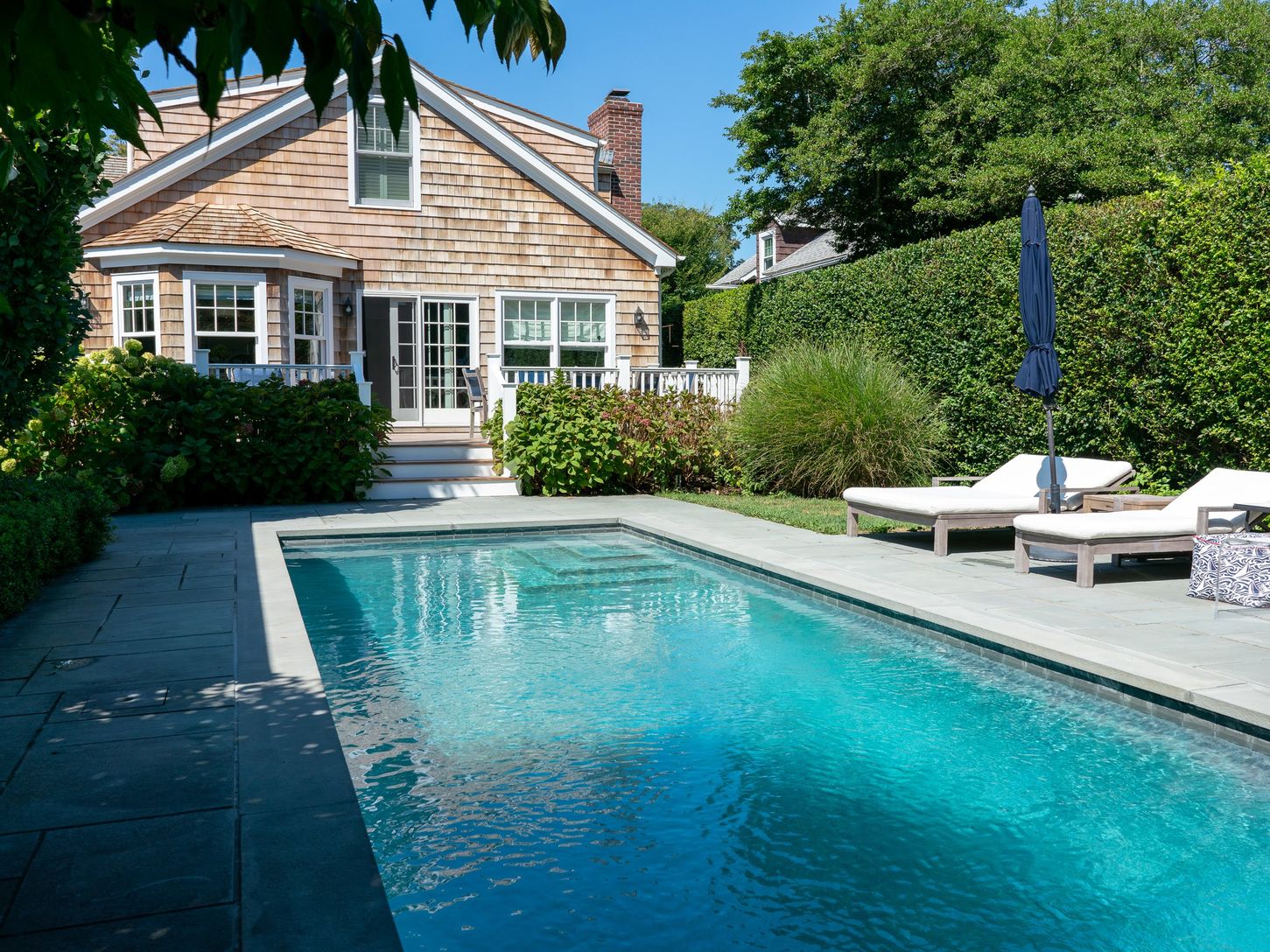 This renovated Southampton Village Traditional with 4 bedrooms, 2.5 baths and a den or 5th bedroom is the ideal summer get-a-way. The open floor plan features a gourmet kitchen, family room, with fireplace, formal ding room and additional space in the finished lower level. This joyful home is located on a quiet street with a private setting that includes a spacious deck, heated gunite salt water pool with waterfall, outdoor shower and a pool h