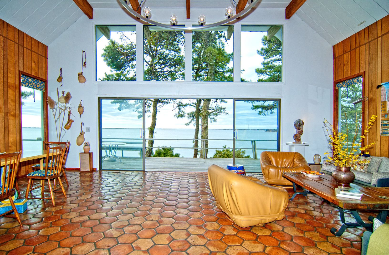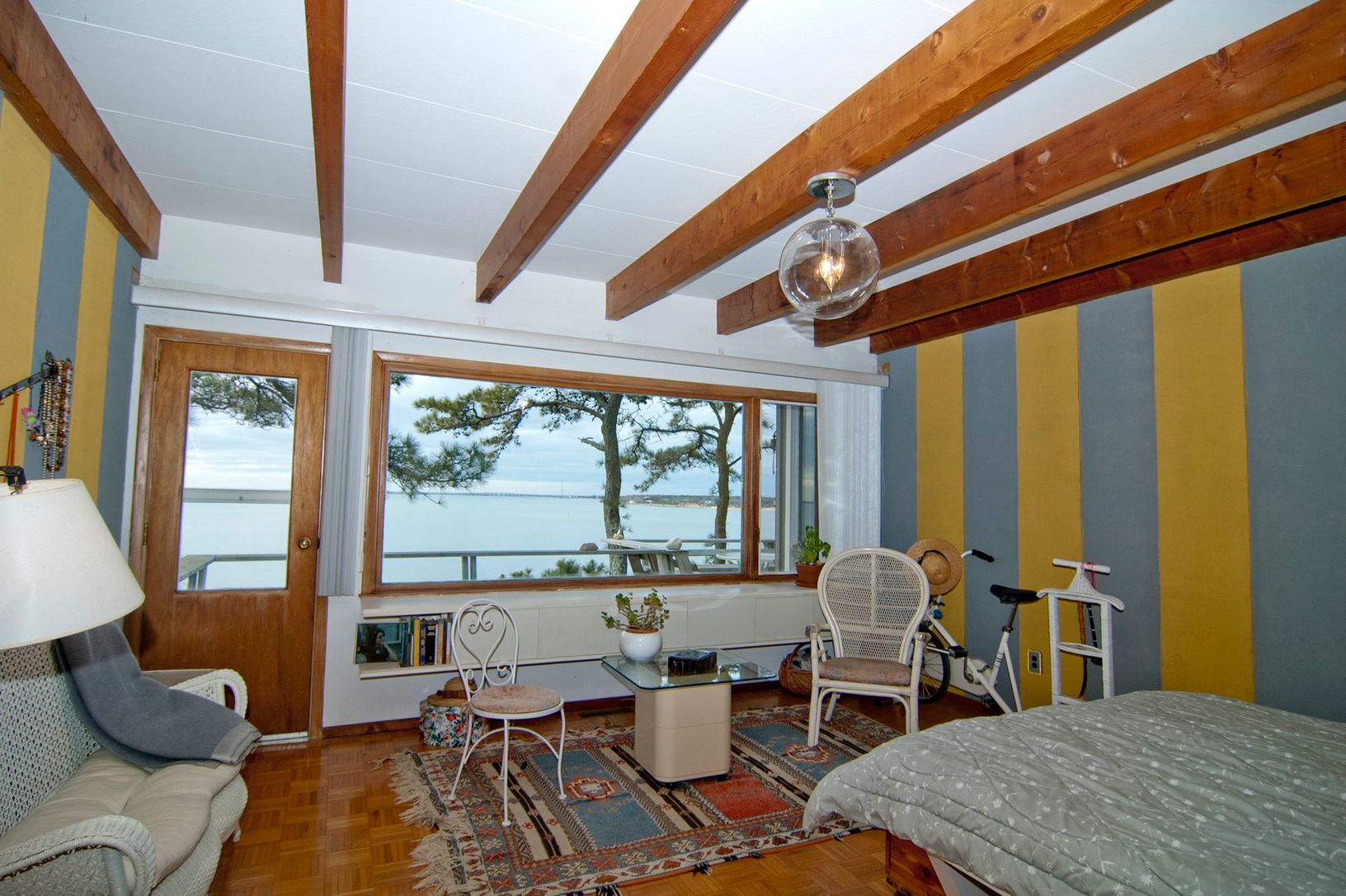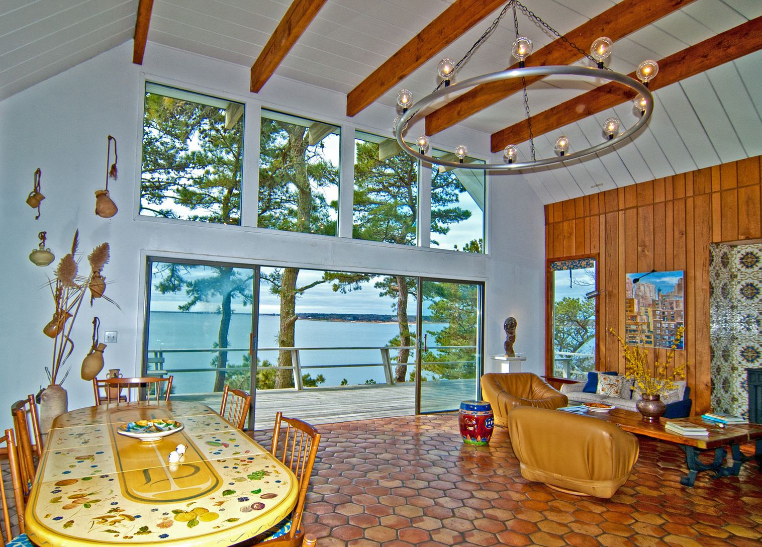 No, your not on the west coast on the PCH in Carmel, but you could be..... South of the highway and perched on one of Southampton's highest bluff locations sits this Modern Home 65' above the sea. Offering a spectacular vista and 100 feet of your own NEW BULKHEADED WATERFRONT under construction, and steps into the bay. This is a special spot. The open floor plan, living room wfpl, dining area, vaulted ceilings with exposed beams, and huge win