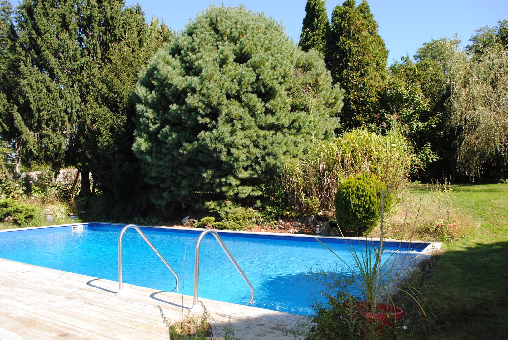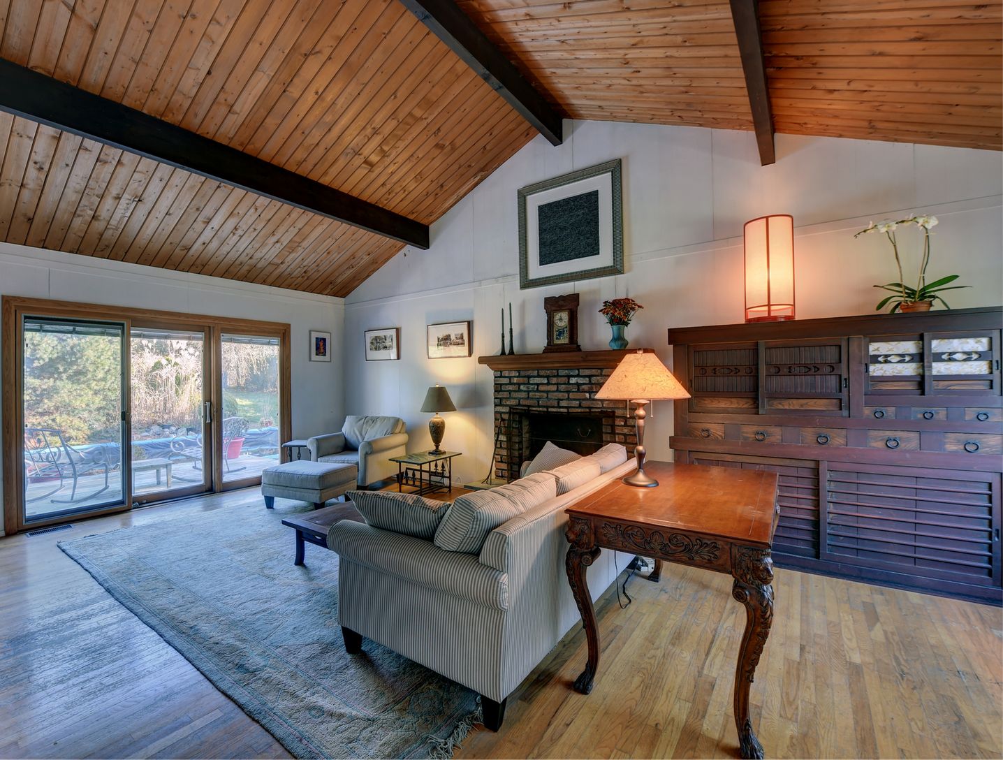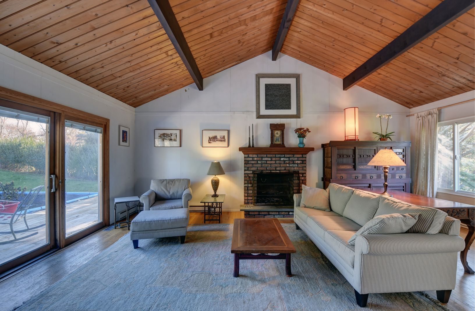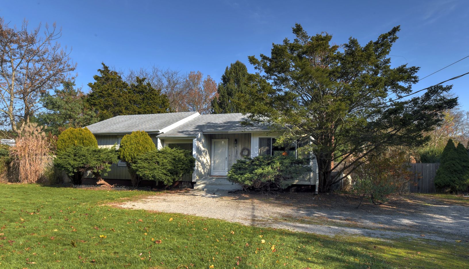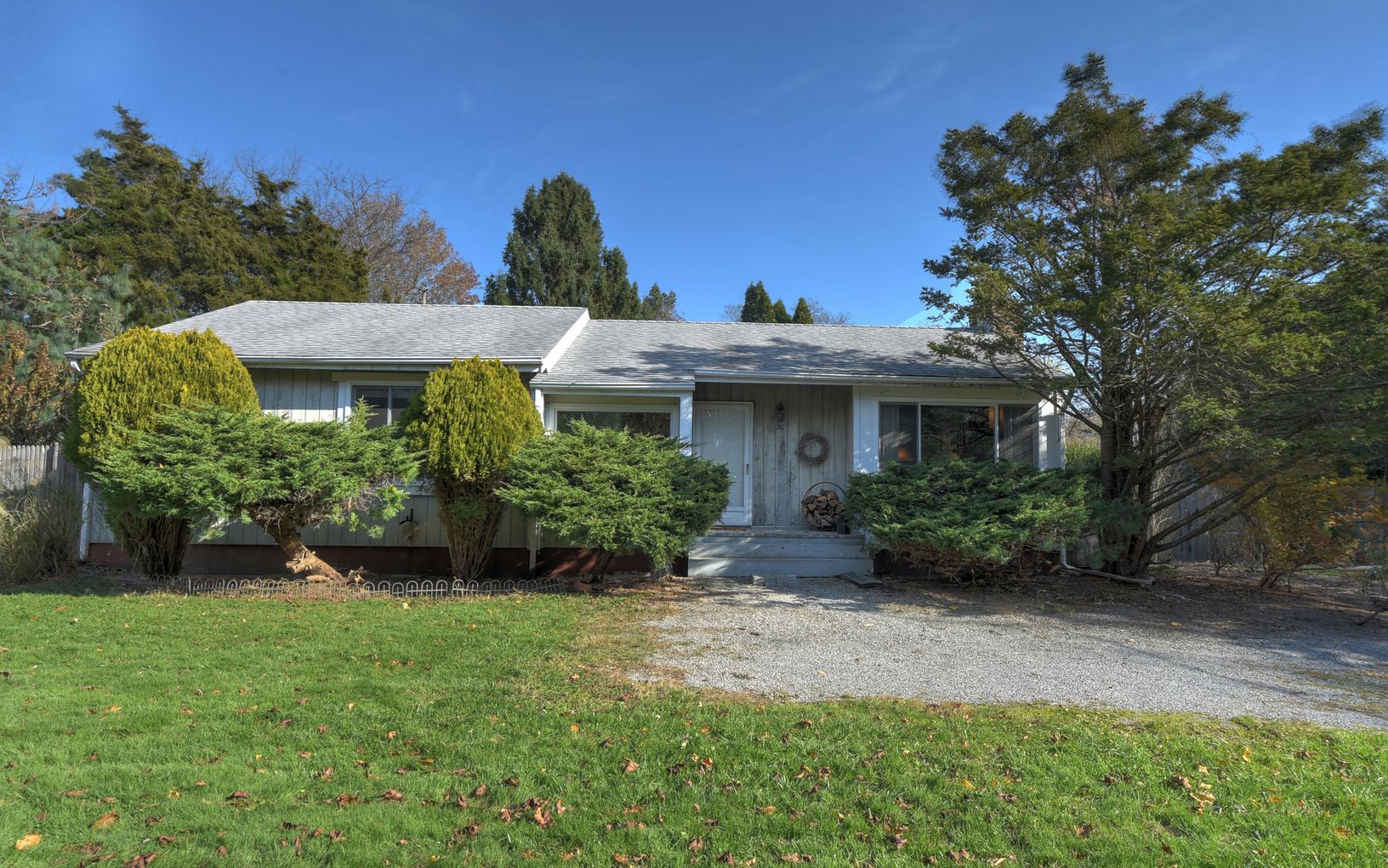 This private oasis awaits you down a long drive. Set far off the road with lush landscaping and a very private pool area, this three bedroom home features a living room with a vaulted ceiling, masonry fireplace, and doors out to the deck and pool. Kitchen with ample room for a table, a master suite and central AC. Room to expand. Minutes to golf courses, Village and the Ocean. Welcome to your retreat.