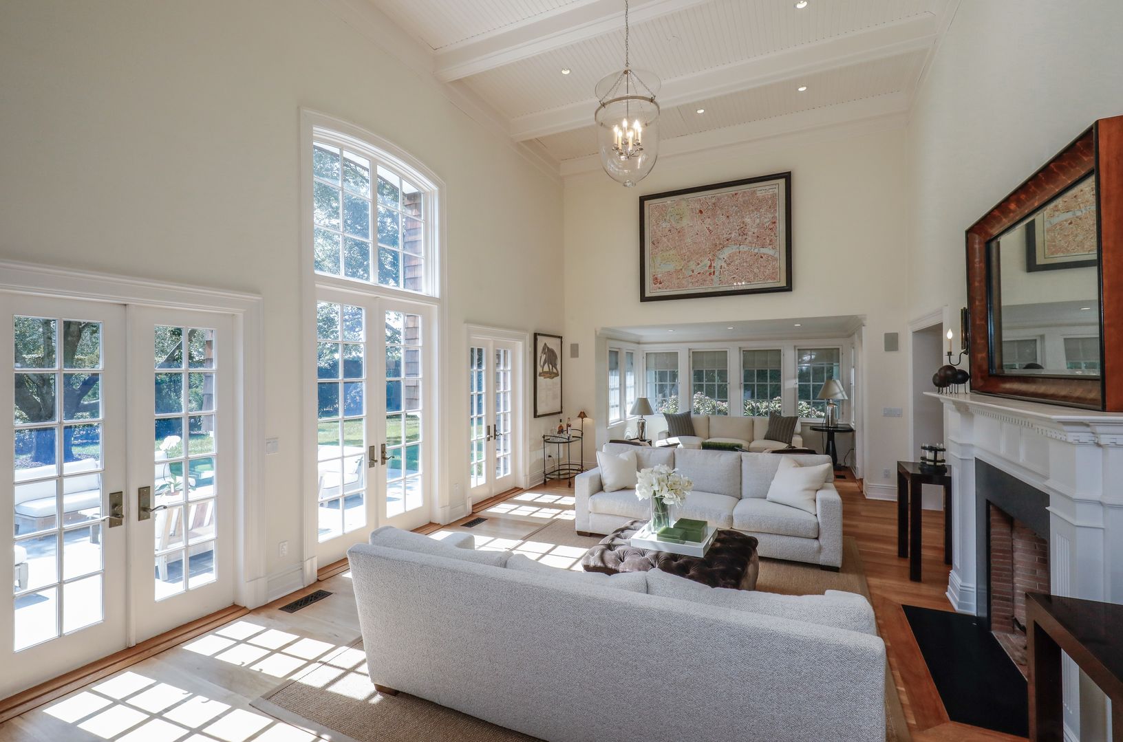 Wyandanch Lane, with the gorgeous canopy of London Plane Sycamore trees, is the coveted location of this architecturally distinct home. Hear the ocean roar as you are just moments away to one of the most prized sand Atlantic ocean beach stretches on the East Coast. Sequestered down a private drive with 15 foot (+ or -) privet hedges is the very handsome home with glorious and ample living spaces including the sunlit living room, formal dining