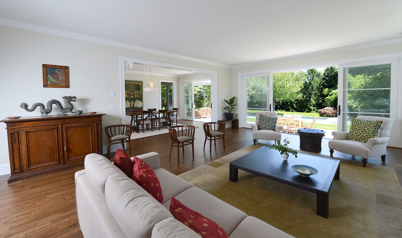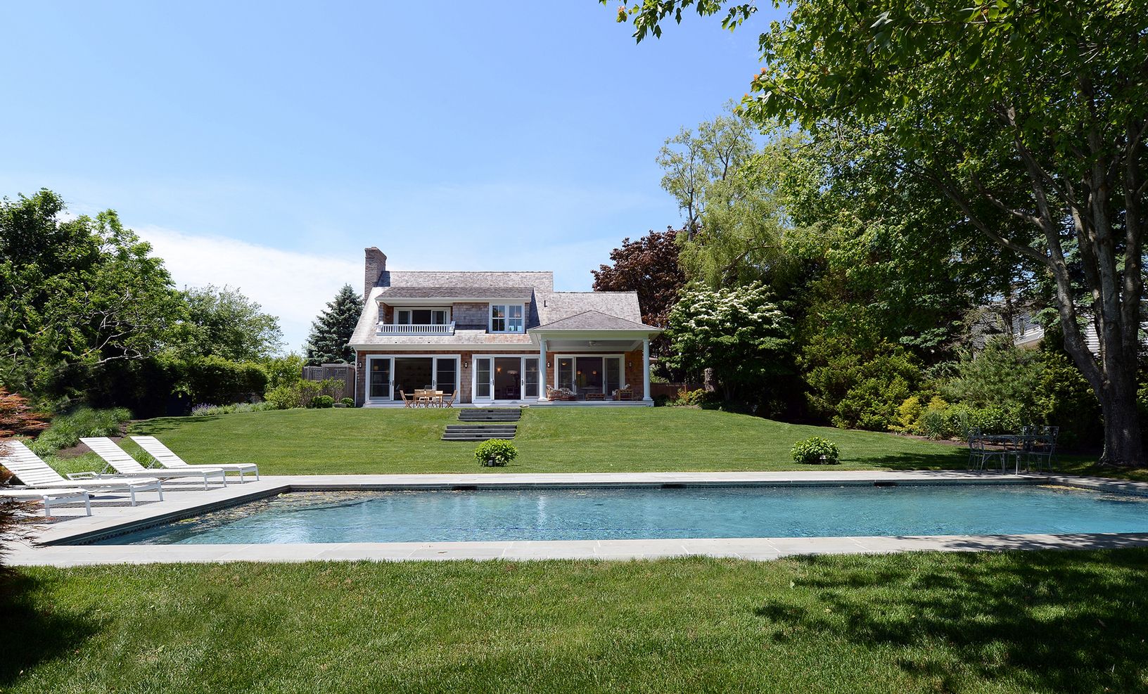 Privately situated south of the highway on a beautifully landscaped acre in the estate section of Southampton Village, just moments from ocean beaches. The newly constructed residence offers a spacious 4,100+/- sf of masterfully designed living spaces with 6 bedrooms and 5.5 baths. The open floor plan hosts a beautiful sun-splashed living room with fireplace, dining room, sleek eat-in kitchen with a walk-in pantry, gorgeous marble counters and