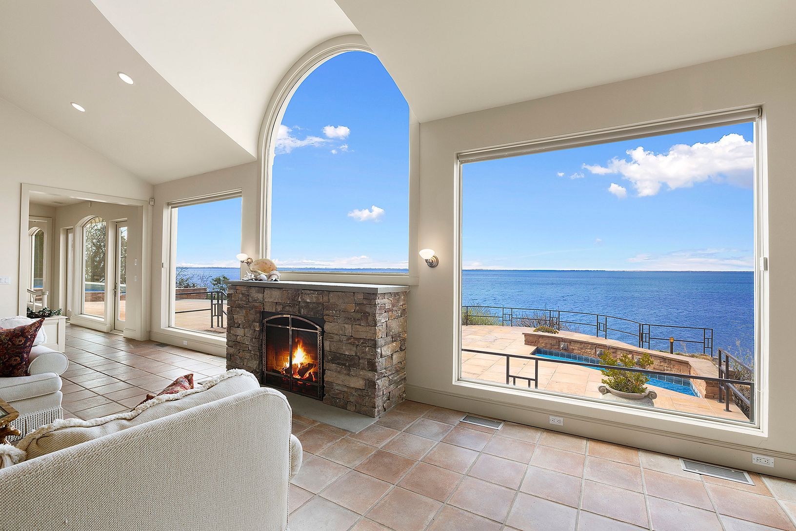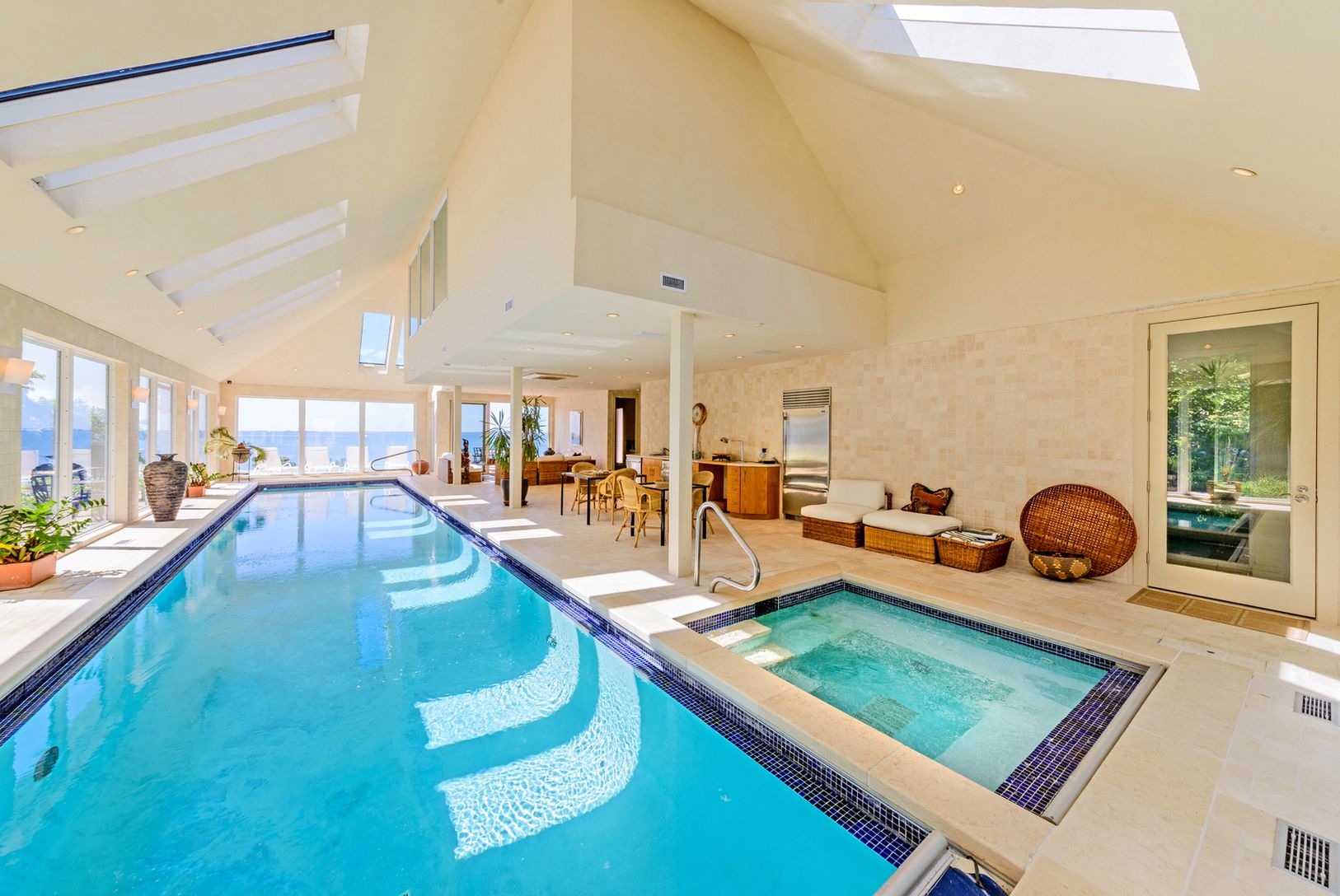 This classic villa has it all, including 200 ft. of open bayfront property with panoramic views and spectacular sunsets overlooking the Shinnecock Bay and Atlantic Ocean. The villa offers a soaring great room, media/game room, spacious gourmet kitchen with breakfast nook and indoor 14x50 lap pool overlooking the bay with Jacuzzi, 2 saunas, elevator, 2 steam showers, gymnasium, wine cellar, and full custom surround sound, inside and out. Heated