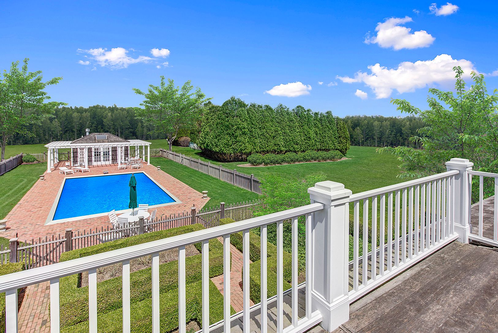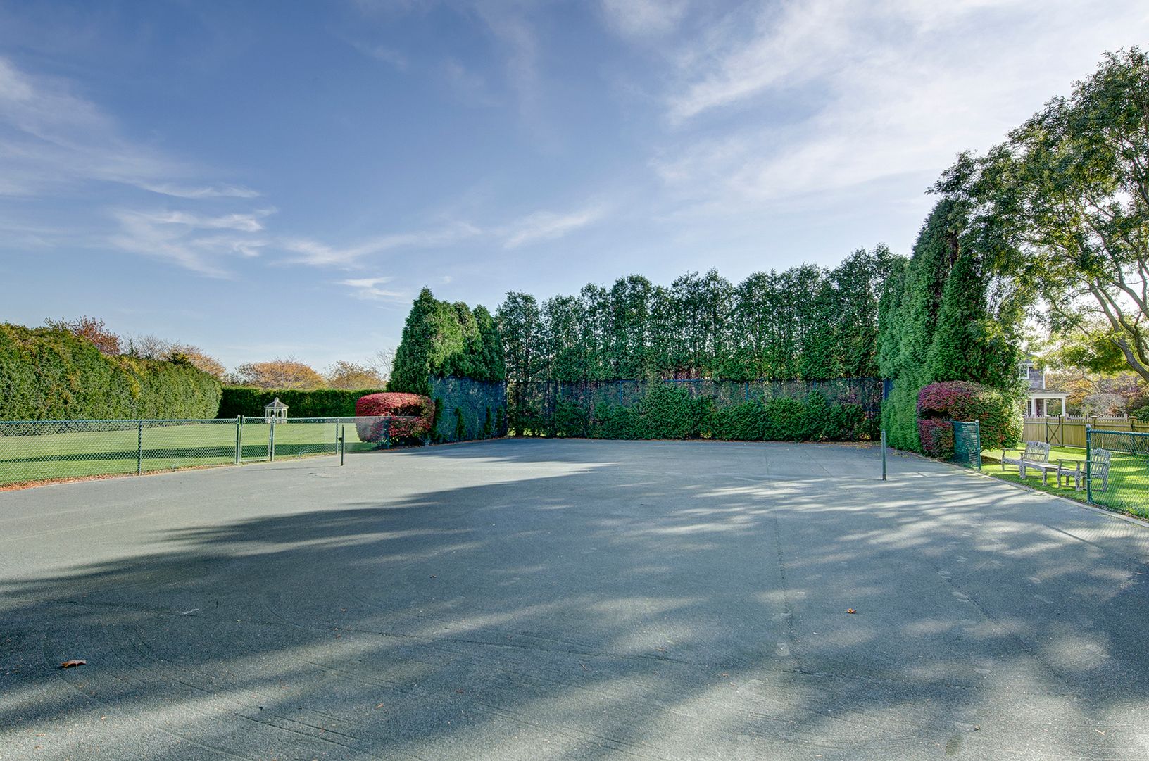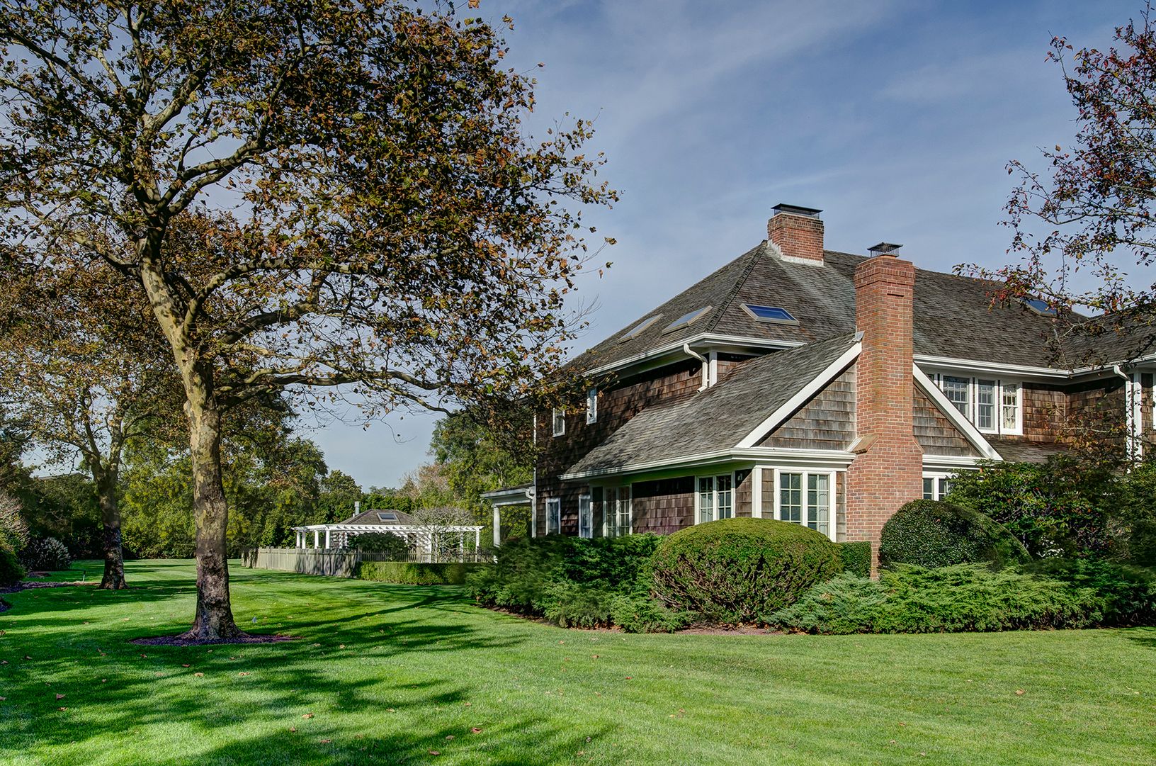 Meticulously landscaped with mature trees and plantings, this park-like property is situated in the prestigious and gated Fordune estate section of Southampton. Highly sought-after with deeded ocean access, this magnificent parcel offers more than 3 acres of possibilities. The existing home is a lovely shingled traditional featuring six bedrooms, five and one-half baths, a pool house, gunite pool, and Har-Tru tennis court. The property has th