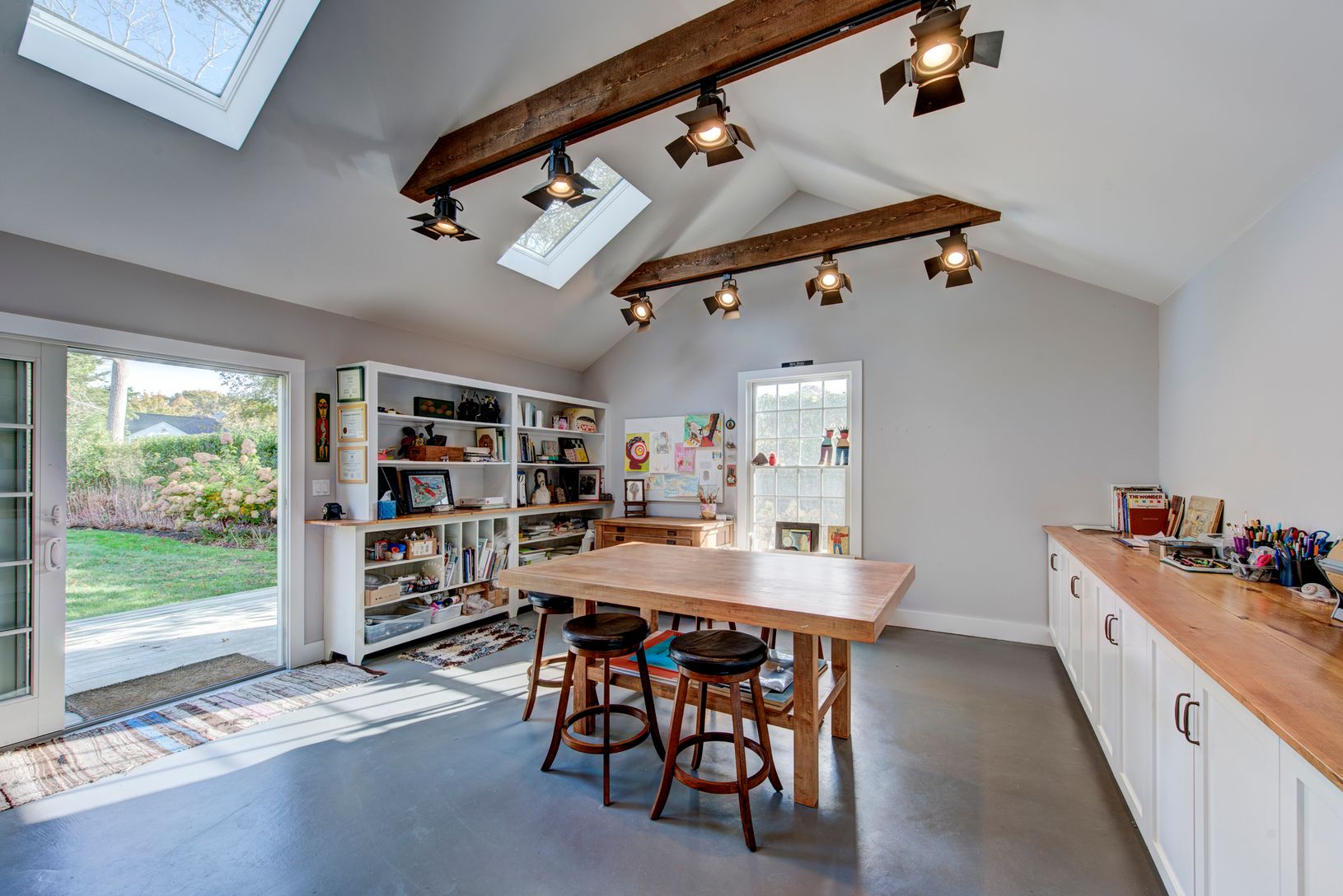 Incredible price and lots of opportunities. This beautifully detailed 5 bedroom 3 and 1/2 bath house is move - in ready with potential for expansion. It is situated on a half acre Village lot with a professionally landscaped yard, an oversized solar heated gunite pool and separate artist studio. The first floor has a large custom eat in kitchen, dining room, powder room and living room with fireplace. All living areas open out onto a