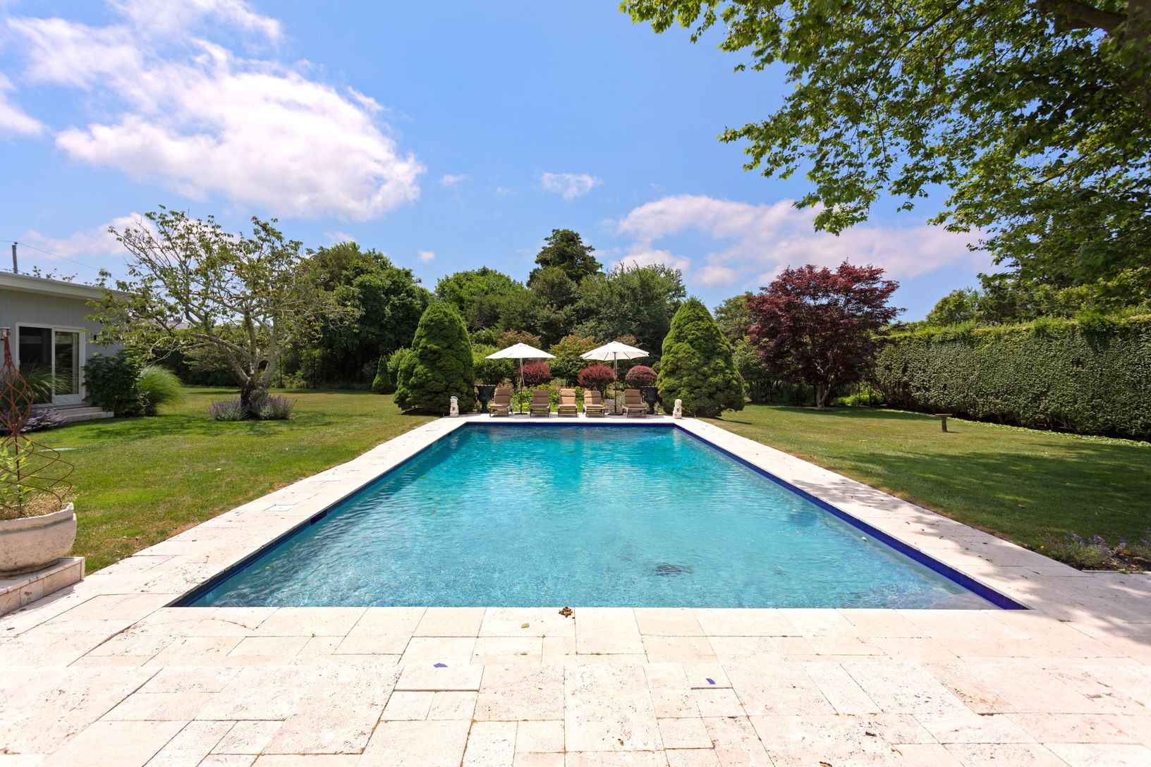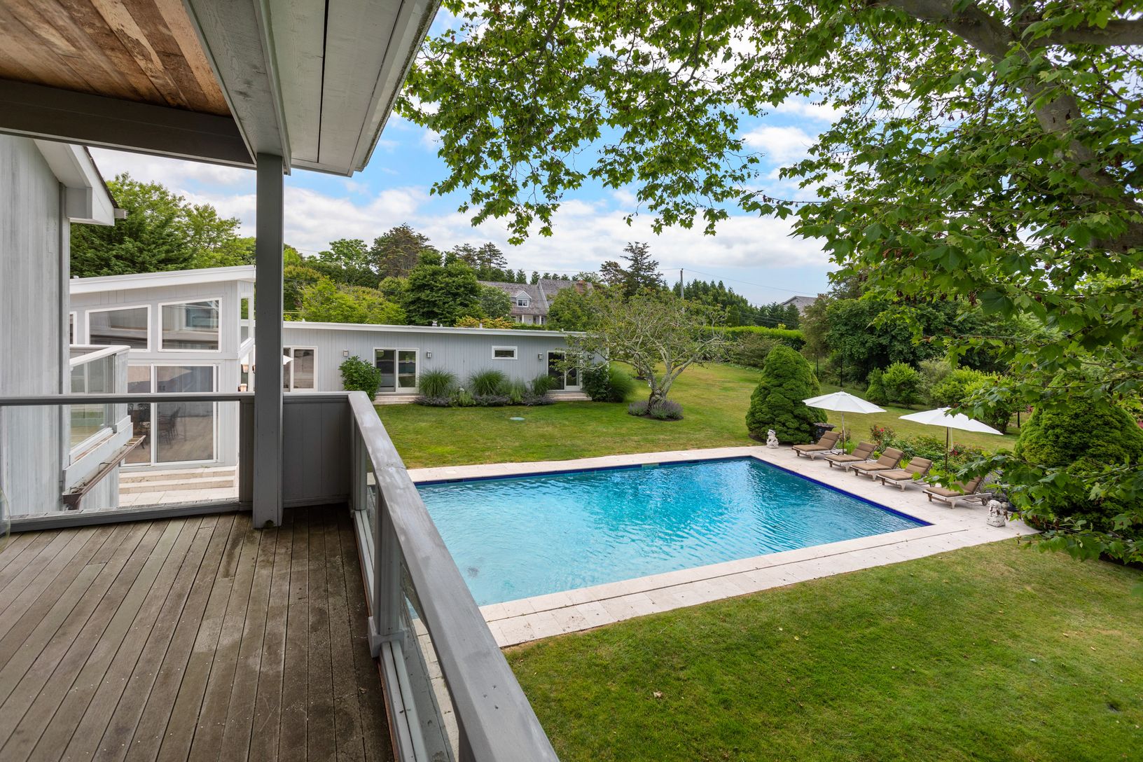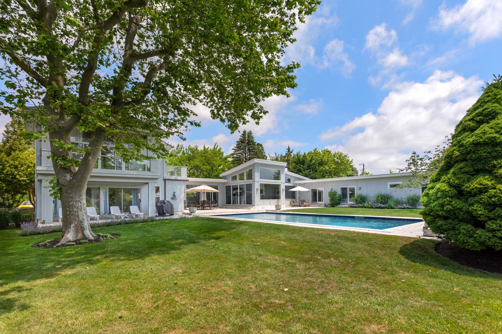 This modern house is located in Southampton's prestigious Estate Section and situated on one acre of manicured gardens with it's outdoor kitchen on the main patio by the 20'x40' heated gunite pool make this house is ideal for entertaining. With 5 bedrooms and 4.5 baths including master with large terrace which has direct access to the pool and overlooks the grounds open living room, dining area, new kitchen and spacious grounds make this a