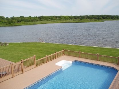 Incredible 6 bedroom beach house in the most amazing waterfront setting. 180 degree views. 320 FT bulkheaded waterfront. The pictures say it all. Spacious, open and sunny. Pristine inside and out. Dock your boat (UP TO 35') in your own slip, sip a glass of your favorite beverage on the lawn overlooking the water while enjoying incredible views and sunsets or relax by your waterside pool. First floor and second floor masters. Second floor is ac