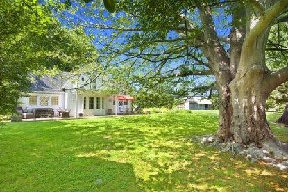 A remarkable estate on coveted, prestigious Wyandanch Lane with almost 400 feet of waterfront on Old Towne Pond offers five +/- acres of natural, unspoiled land in the heart of Southampton Village. One of the last of its kind, this compound extends from Wyandanch Lane to Old Towne Road, and consists of four buildings, which includes a charming two-story gate house converted into a seven-room home, a barn renovated into a four-bedroom house, a