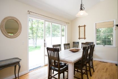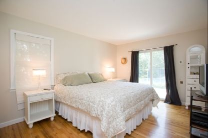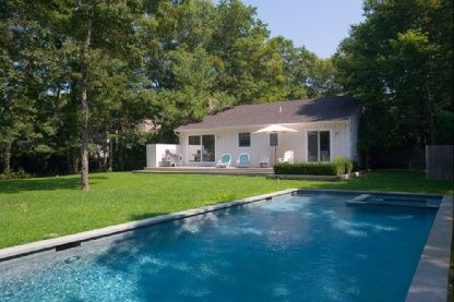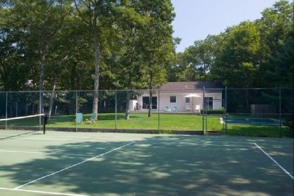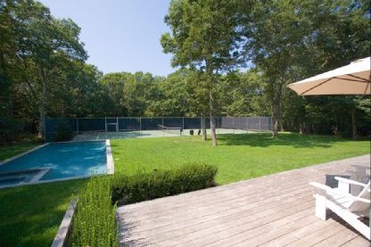 Short sale situation. This perfect vacation home is less than 10 minutes to the village. The property consists of one acre with heated Gunite pool and spa, all-weather north-south oriented tennis court, west-facing deck and backyard all naturally screened for privacy. The well-maintained house contains an attractive vaulted open living/dining room with WBF, kitchen, master bedroom with sliders to deck, two guest bedrooms and a second full bath