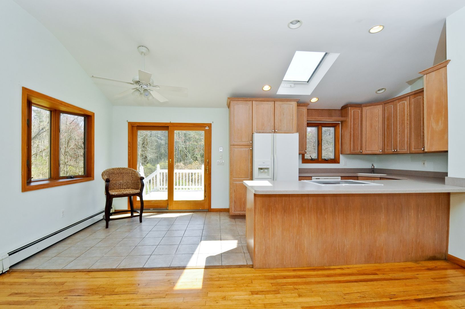 Delightful, sunny, one level home in Southampton. 3 bedrooms and 2 full baths plus a wealth of features including an open, skylit Kitchen/Great Room; hardwood floors throughout, skylit master bedroom with private bath and sliding glass doors to decking; sky lit hall bath with jetted tub; finished basement; central air conditioning; large deck spanning the full width of the house; motorized awning; oversize storage shed; circular driveway and m