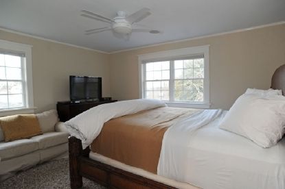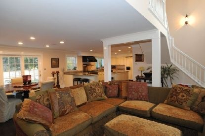 A quiet Southampton Village location on a cul de sac is where you'll find a recently renovated 4 bedroom, 4 1/2 bath post modern. Richly stained oak floors welcome all into fresh interiors that include living room with fireplace, study with coffered ceilings as well as a crisp new kitchen with center island and breakfast bar. Upstairs the master suite with his and her baths and sitting room is joined by 2 additional bedroom suites. The finishe