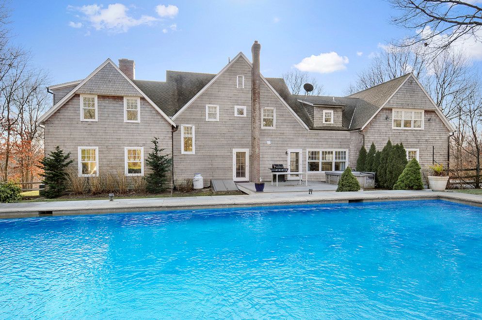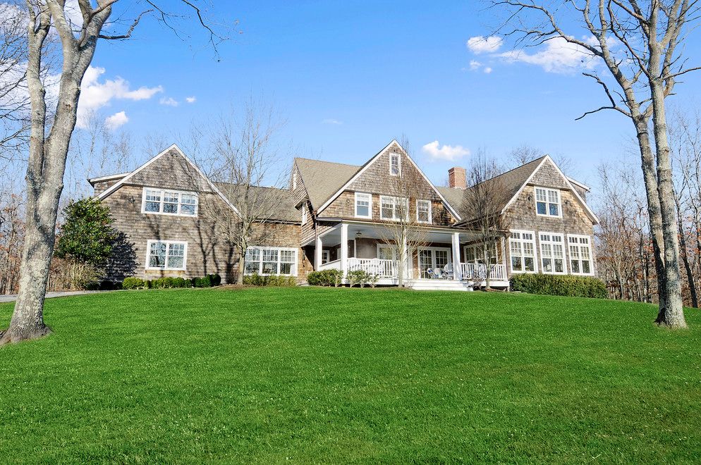 Tucked away from any main thoroughfare is this handsome home designed in the shingle style by one of the Hamptons renowned architects. The rolling land of nearly 4 acres offers exceptional outdoor space for living and enjoying the natural setting. As you approach the residence with a large covered front porch, the details unfold as does the quality of design and construction. Each detail inside of this home from the entry hall, living room wit