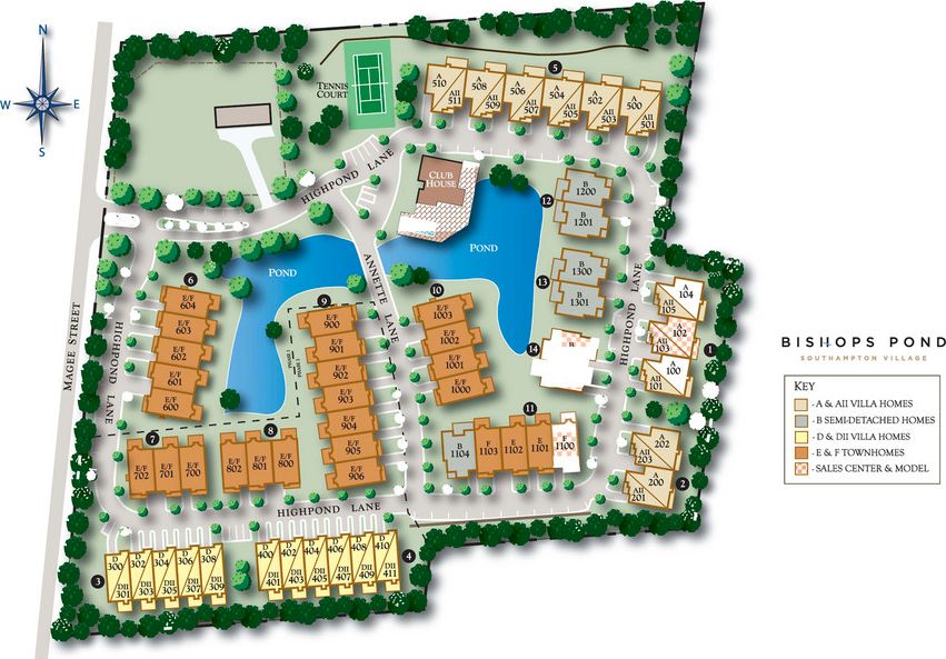 Bishops Pond offers a resort lifestyle with all the comfort and style befitting for Southampton Village. This unparalleled lifestyle includes: an exclusive Southampton Village address, easy access to pristine beaches, beautifully landscaped gardens, community clubhouse, outdoor pool and spacious deck overlooking pond, outdoor tennis court, well equipped fitness center and yoga room, lounge with billiards, barbeque, fire pit, large covered pat