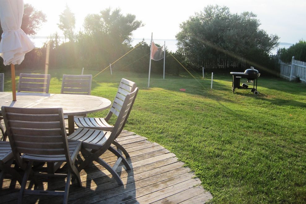 150 feet of Peconic Beach Front. 5 bedrooms, 2.5 baths, den, Spectacular Sunsets!! Plans in Place for a New Construction with 20x40 heated gunite pool with Jacuzzi., 2 car garage and pool house. Rare opportunity!!