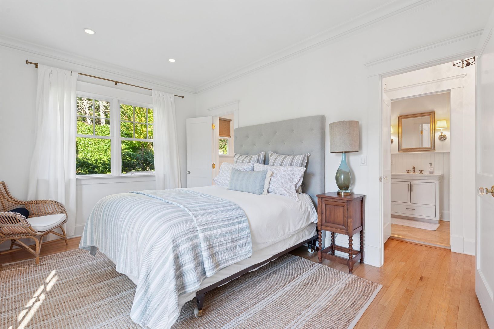 Immediate bay access and water views in a coveted South of the Highway location offering ease to Southampton Village as well as NYC. Traditional Hamptons home with guest cottage offers 4 bedrooms, 4 baths and many custom details throughout. The entry foyer leads to an open light filled living area with a gas fireplace and water views. The airy flow extends to the dining room and country kitchen, complete with top of the line appliances, honed