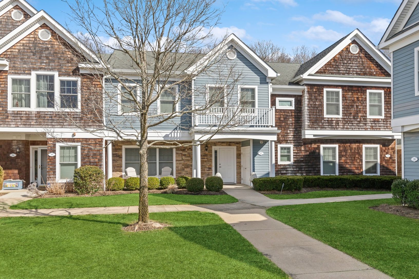 Meticulously kept 3-bed 3-bath like-new townhouse in the popular Courtyards of Southampton community. The airy and bright first floor features a gracious living area centered around a gas fireplace, a large dining area, and a top-of-the-line chef's kitchen with granite counters, breakfast bar, stainless-steel appliances, and a range of chef tools and appliances. Floor-to-ceiling glass doors overlook a quiet brick patio that backs up to lush wo