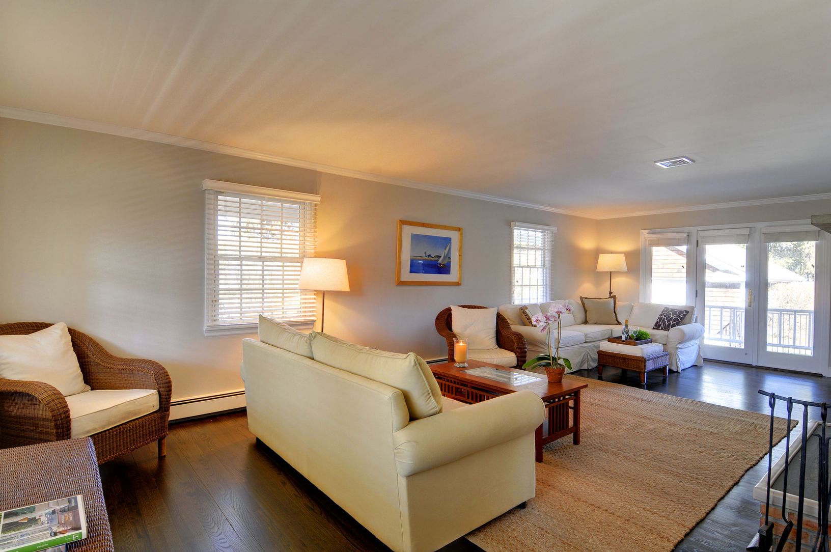On a beautiful and quiet village street in Southampton, this meticulously renovated home is ready for summer enjoyment. It has a center hall foyer, living room with fireplace, TV area and French doors open to a covered porch. A formal dining room off the center hall and a white marble and stainless kitchen with bistro area are great for summer