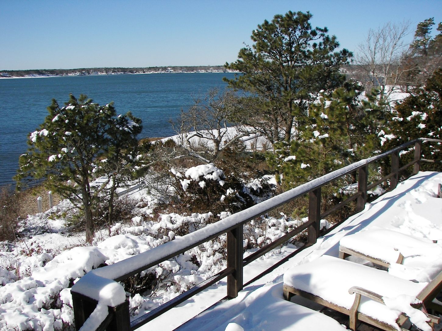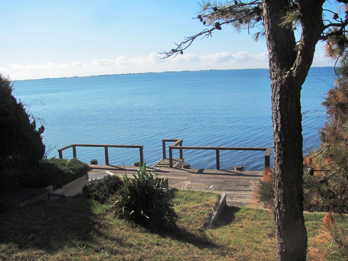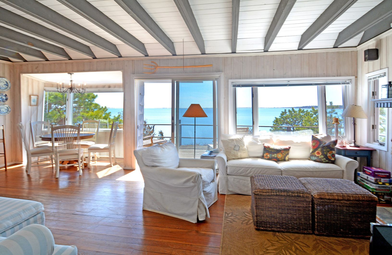 LOCATED IN SOUTHAMPTON! SOUTH OF THE HIGHWAY and MID BLUFF - BULK HEADED WITH STEPS INTO THE BAY!! At a perfect elevation that creates a very special perch! With whispering pines and a 200+' degree views south and west overlooking Shinnecock Bay and the Atlantic Ocean. Commanding views are from almost every room plus a waterside deck. The steps lead directly onto the bay for easy boat and kayaking. Presently offering 4 bedrooms, 2 baths, livi