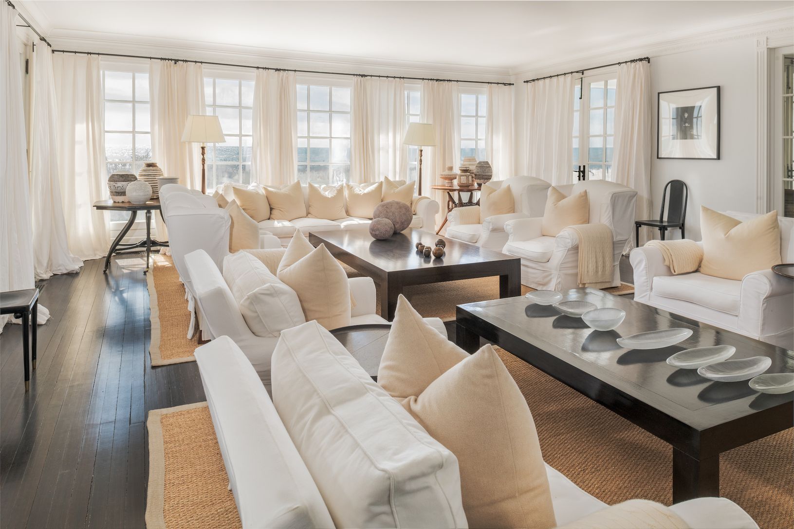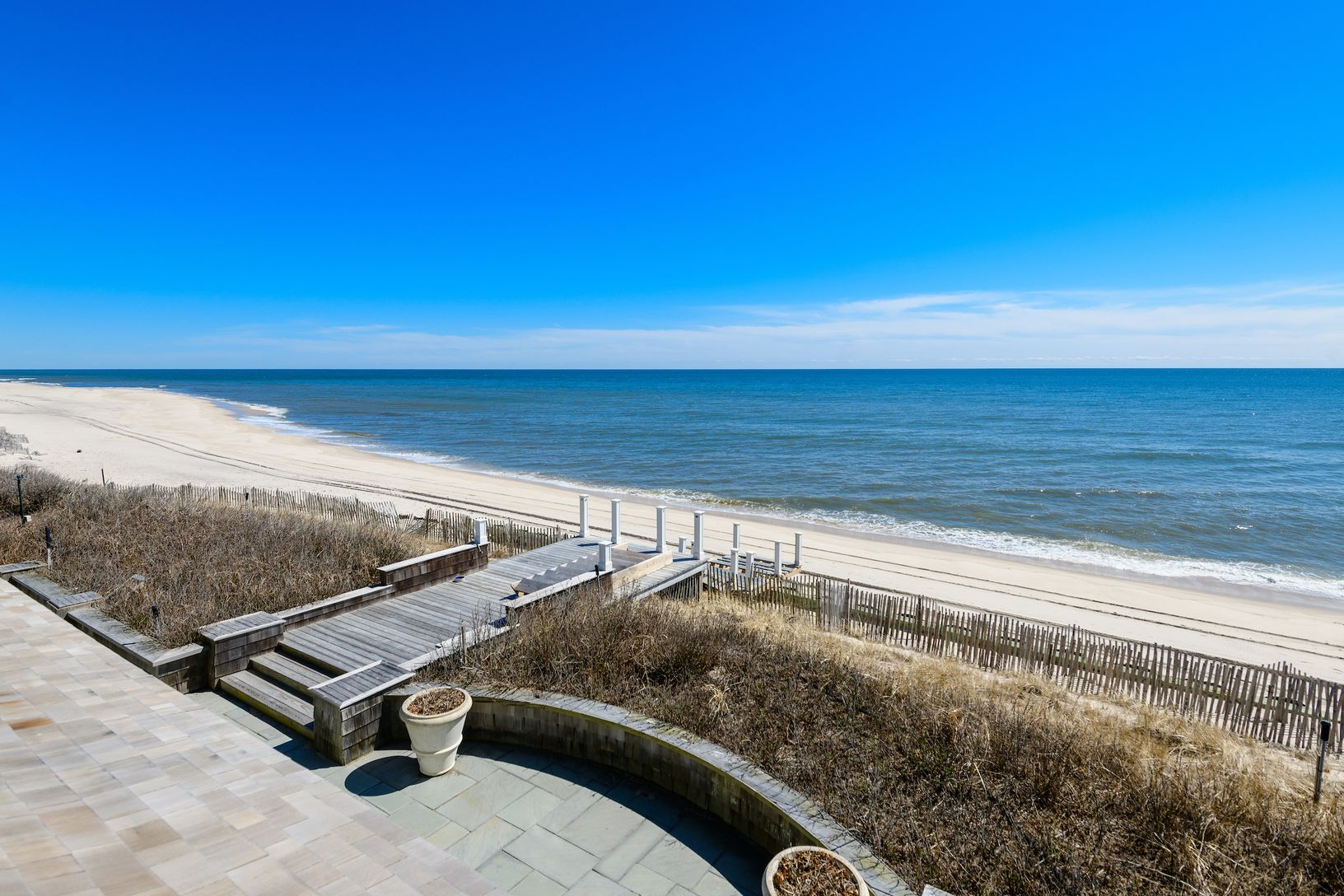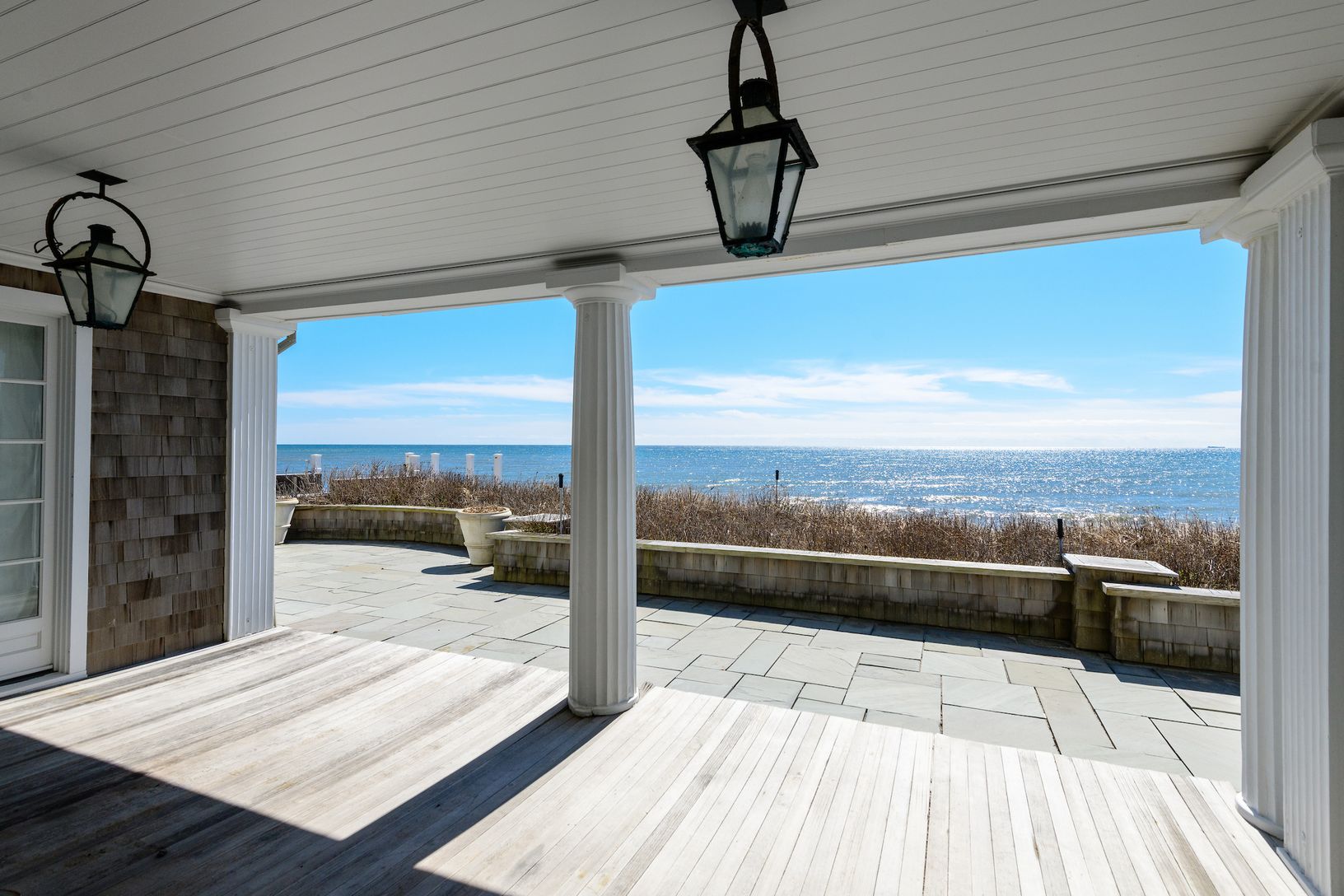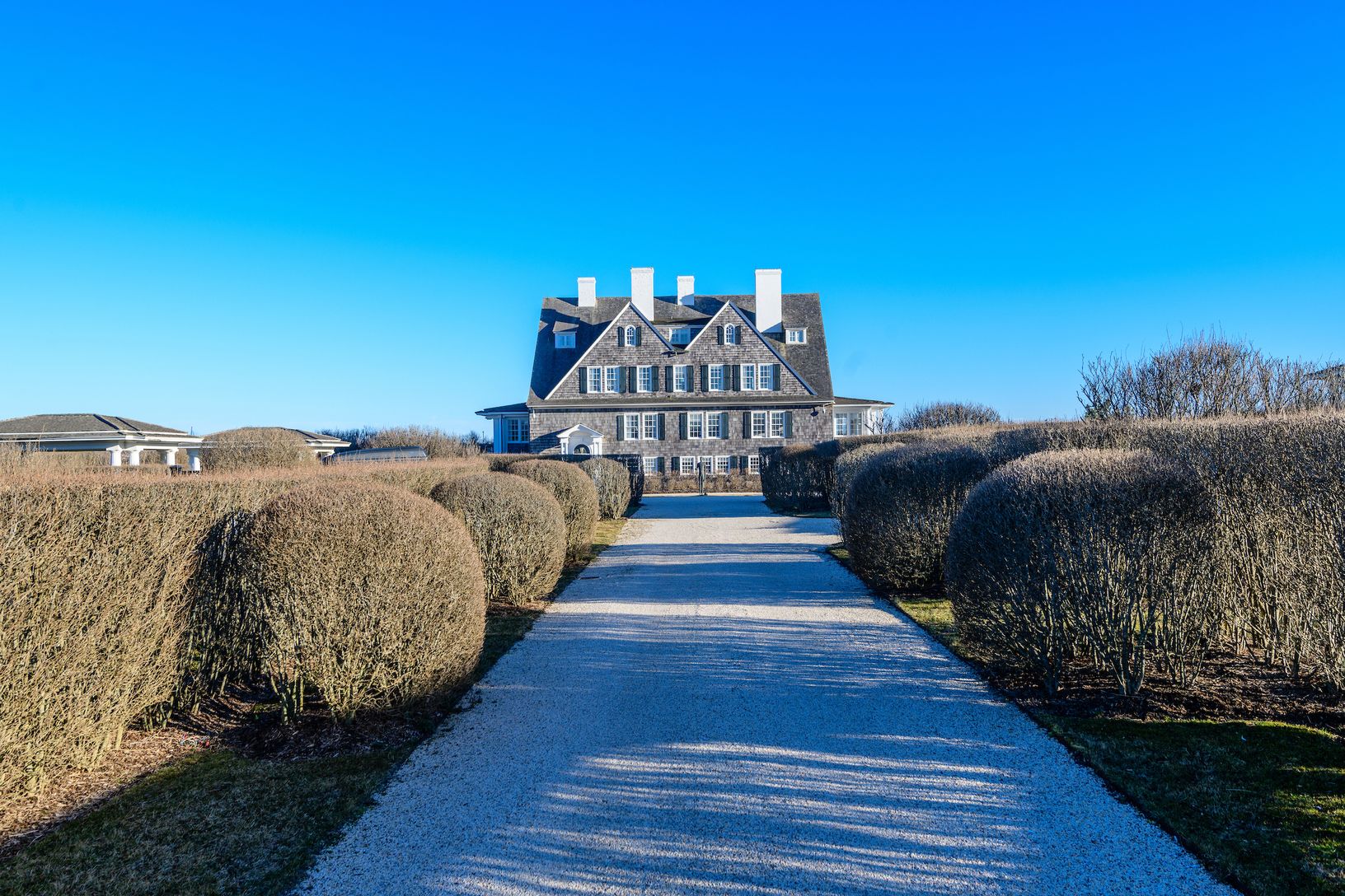 Escape to a Gilded Age jewel with abundant modern amenities, oceanfront on Southampton’s fabled Gin Lane. Built in 1890 with links to famed architect Stanford White, this iconic estate—known as “La Dune”— is a world unto its own. Hidden behind a tall hedgerow on the historic lane, a gated entry opens to a long gravel drive leading to the grand three-story, shingle-style residence rising from the central parking court. With more than 15,000 +/-
