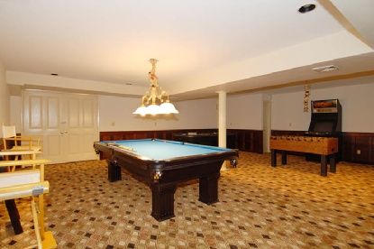 This house has something for everyone. Five bedrooms, 5 baths, first floor master suite with jacuzzi, big, open well equipped kitchen, sunken living room that leads out to patio and formal dining room. There is a gym area in the basement as well a game room with pool and ping pong tables as well as other games and a media room. All of the gaming tables and gym equipment do not convey but are available for purchase. The outside has just as much